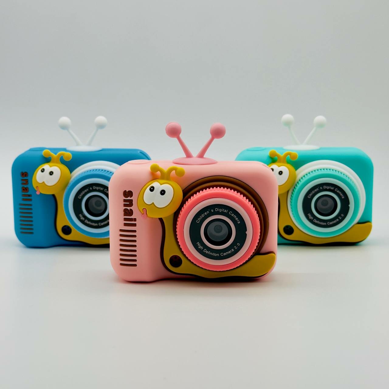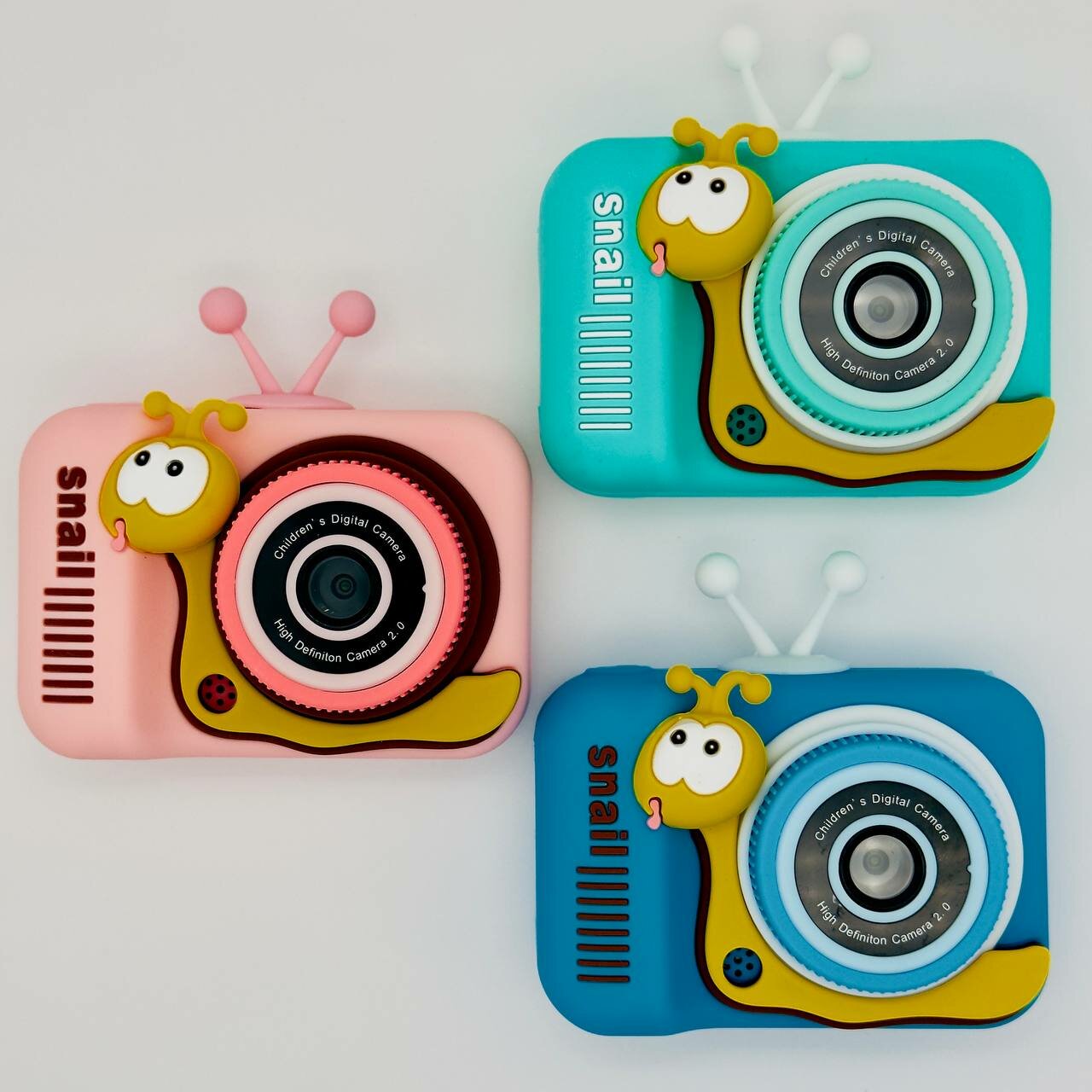 Фотоаппарат детский цифровой Улитка Синяя ударопрочный камера 1080p Full-HD высокого качества со встроенной памятью, фотоаппарат для детей с играми и селфи