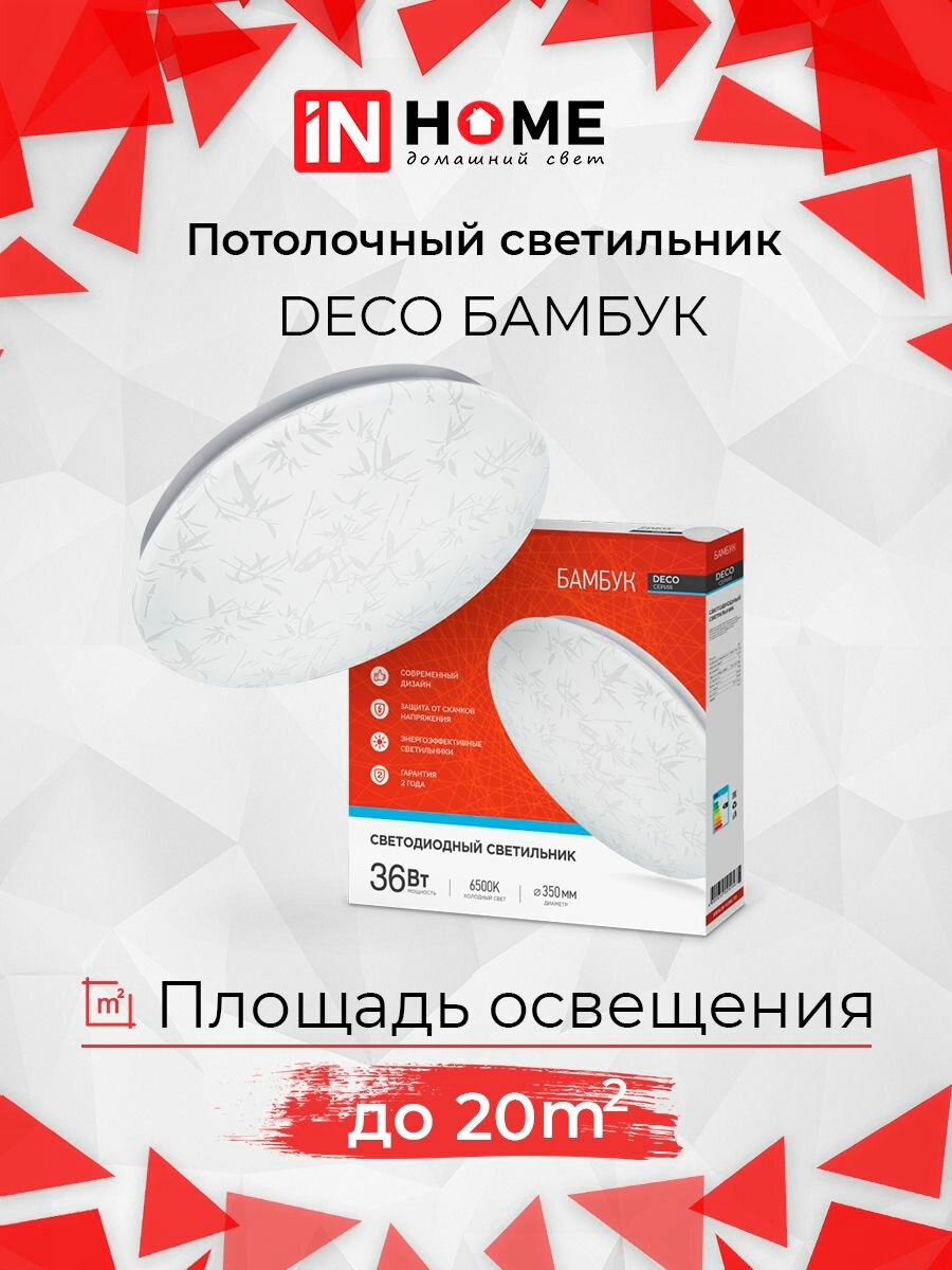 Светильник светодиодный DECO бамбук 36Вт 230В 6500К 2340лм 350мм IN HOME 4690612025056 ( 1шт. )