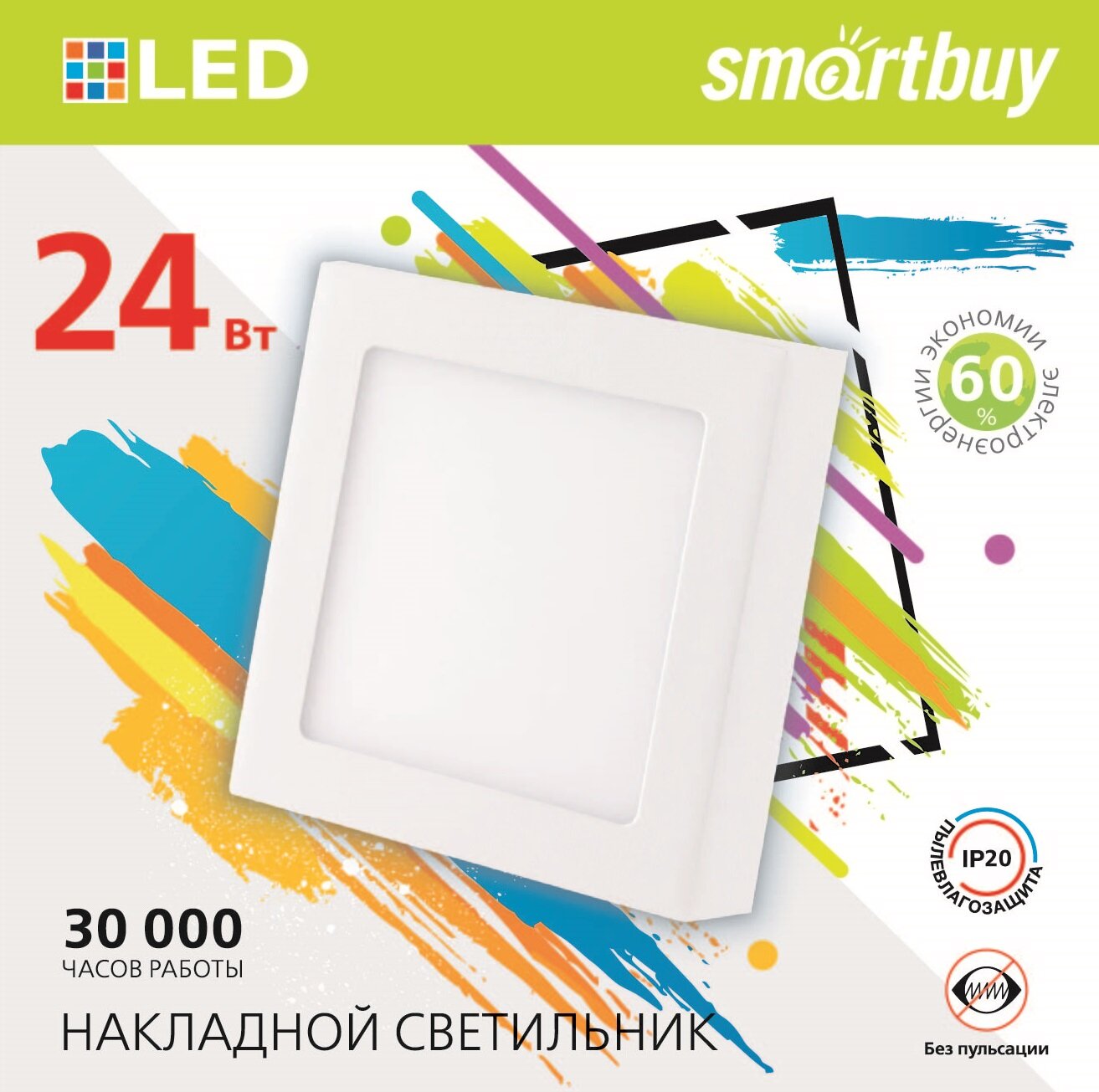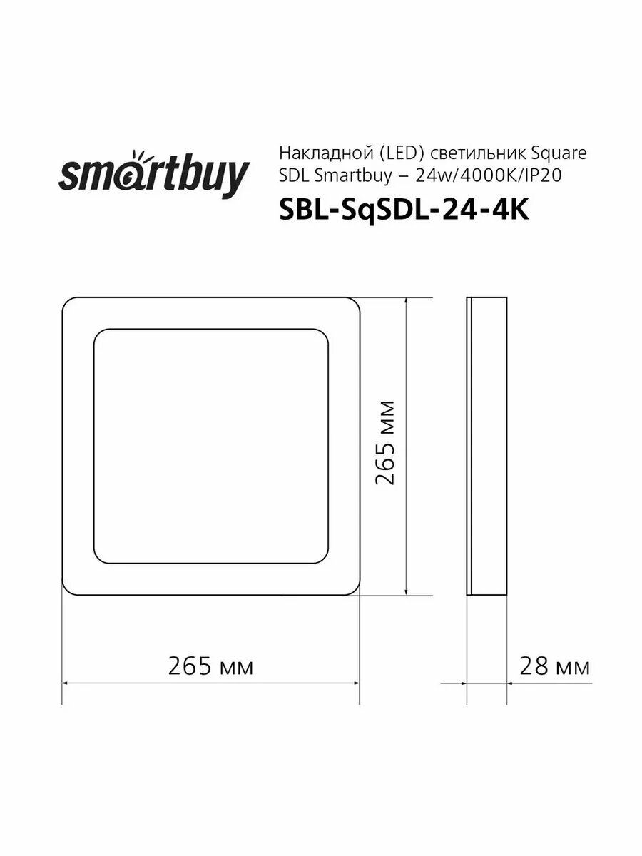 Smartbuy св-к накл. св/д 24W(1920lm) 4000K 4K квадрат 280х28 интересное: