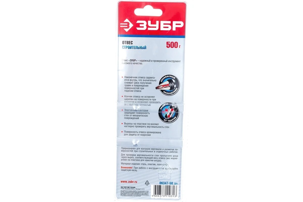 Отвес строительный со шнуром и безопасным наконечником 500 г Зубр 06347-50_z01