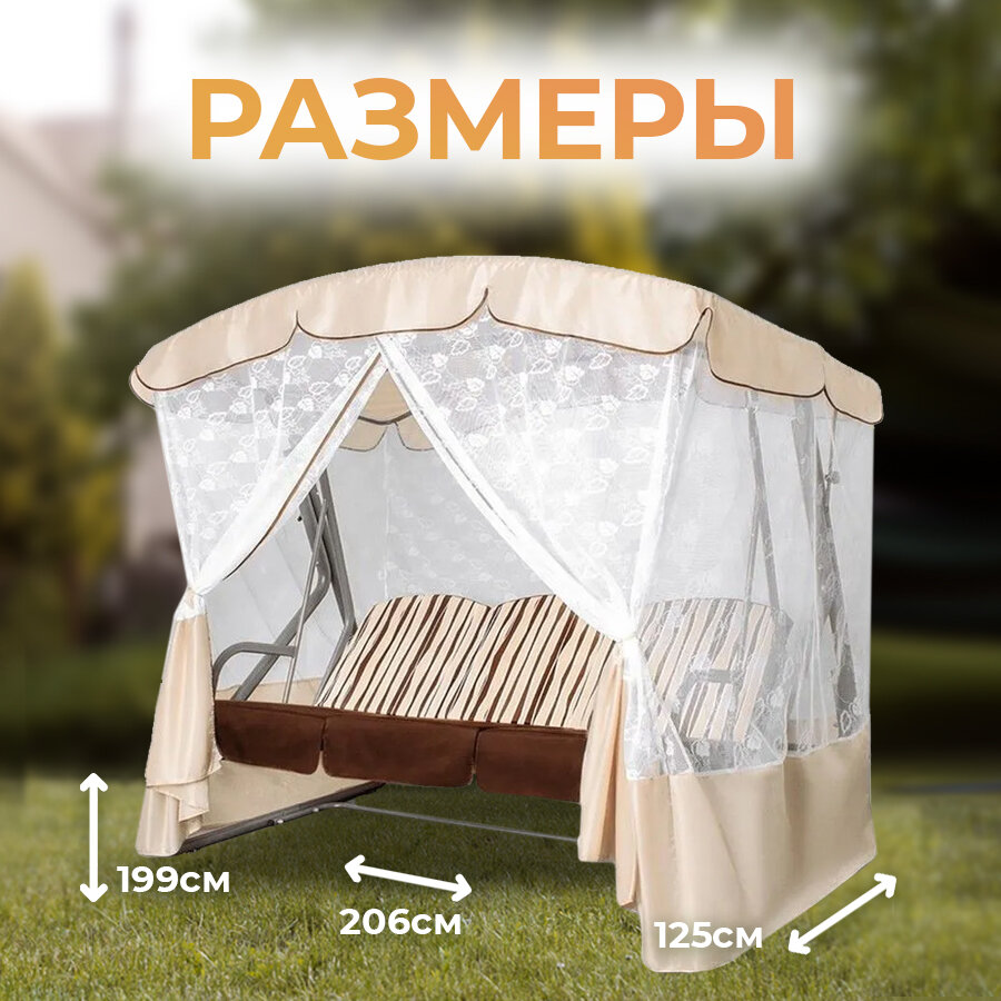 Качели садовые 4-х местные Ольса Шатер ткань панама каркас коричневый, ткань полоска бежево-коричневная