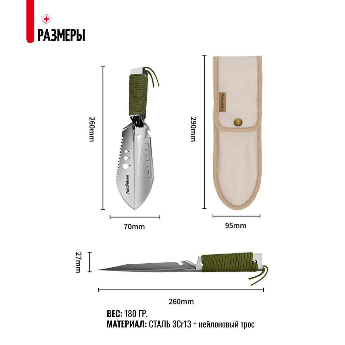 Многофункциональная ручная лопата Naturehike NH20GJ001, нержавеющая сталь