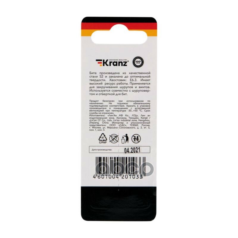 Бита для шуруповерта PZ3х50 мм (2 шт./уп.) Kranz 1 упак арт. KR-92-0420-1 интересное: