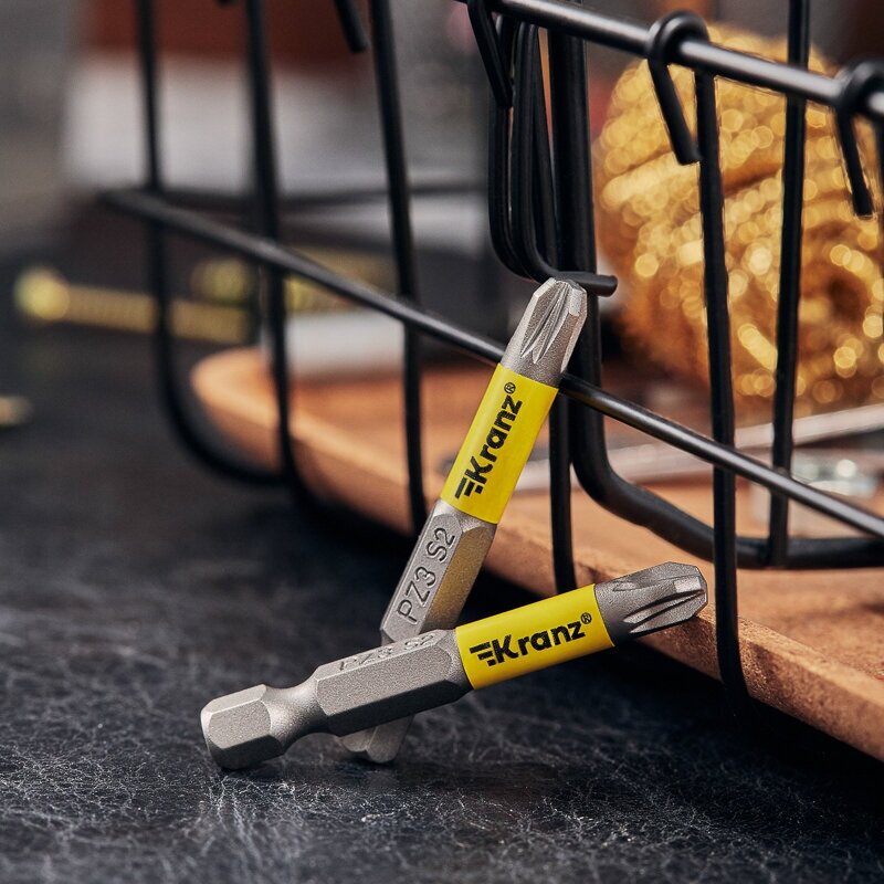 Бита износостойкая для шуруповерта KRANZ с магнитным наконечником PZ3х50 мм, 2 штуки