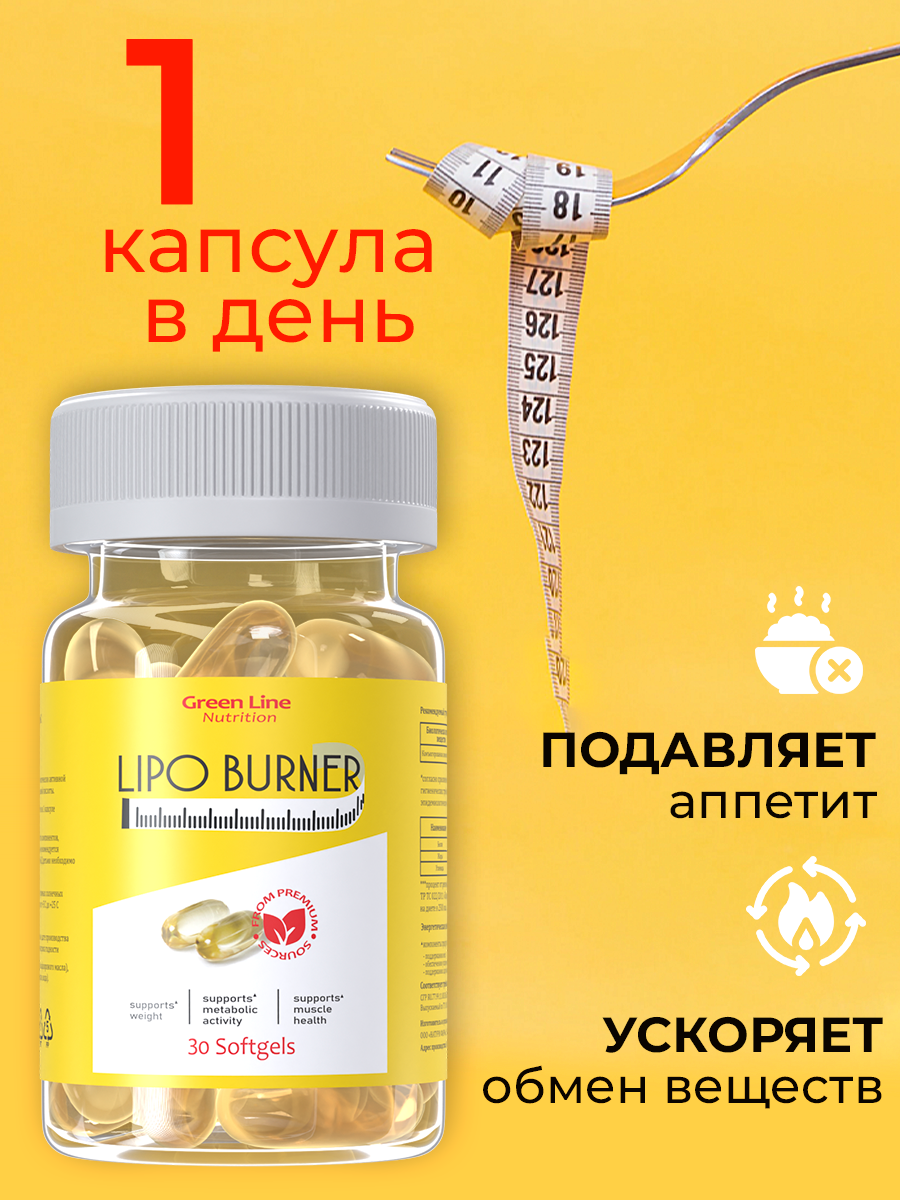 Green Line Nutrition Жиросжигатель для похудения в капсулах Lipo Burner 30 Softgels (Green Line Nutrition)