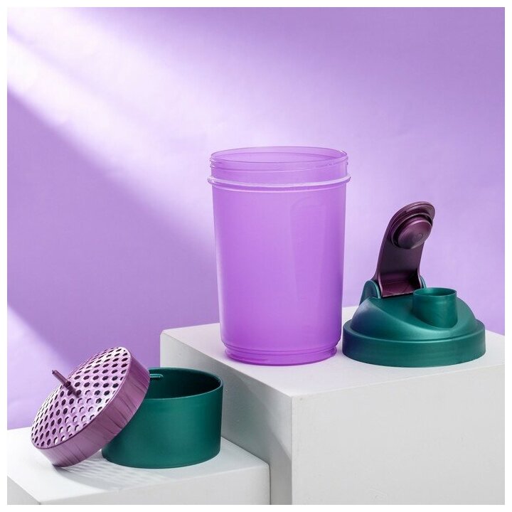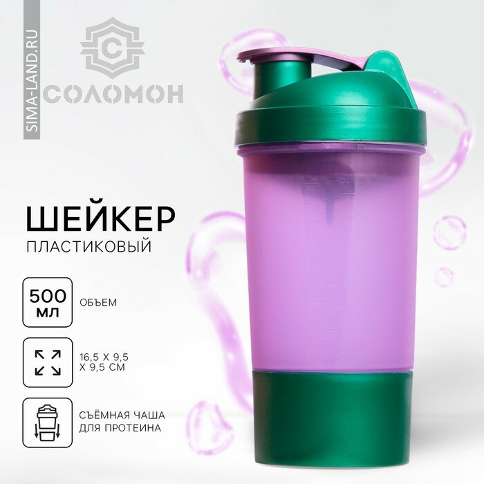 Соломон Шейкер спортивный с чашей под протеин, фиолетово-зелёный, 500 мл интересное: