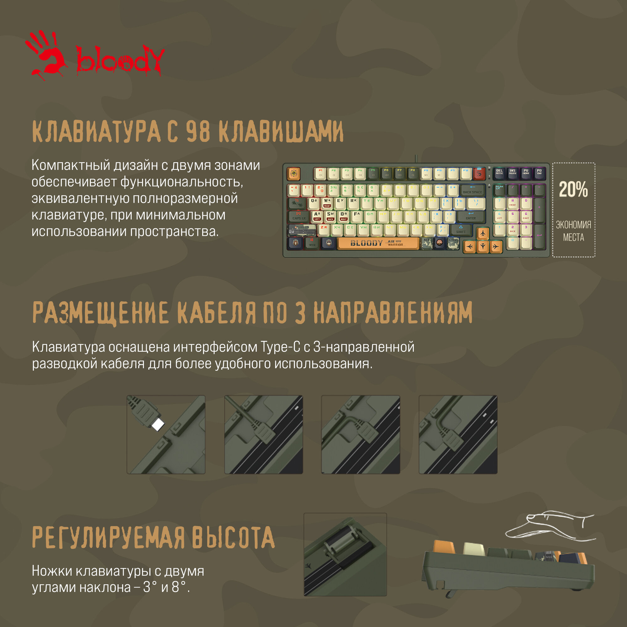 Ниже Вы можете прочитать отзывы на Клавиатура Bloody S98 Aviator Green, ознакомится с подробными характеристиками, посмотреть интересные обзоры и фотографии на Клавиатура Bloody S98 Aviator Green.