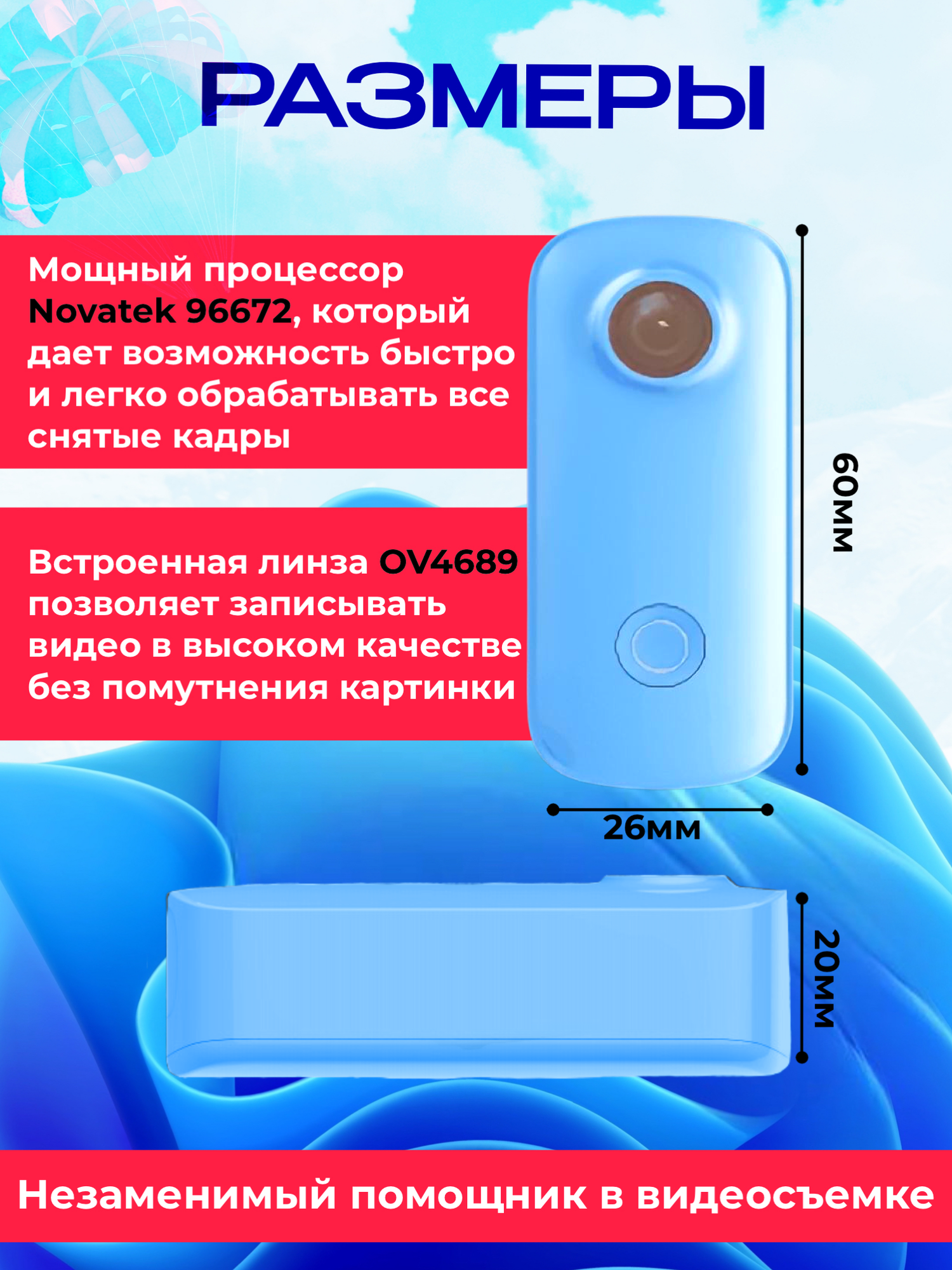 Экшн-камера голубая портативная 4k с чехлом/ Веб-камера wifi с микрофоном/ мини видеокамера для скрытого наблюдения/ беспроводные через телефон
