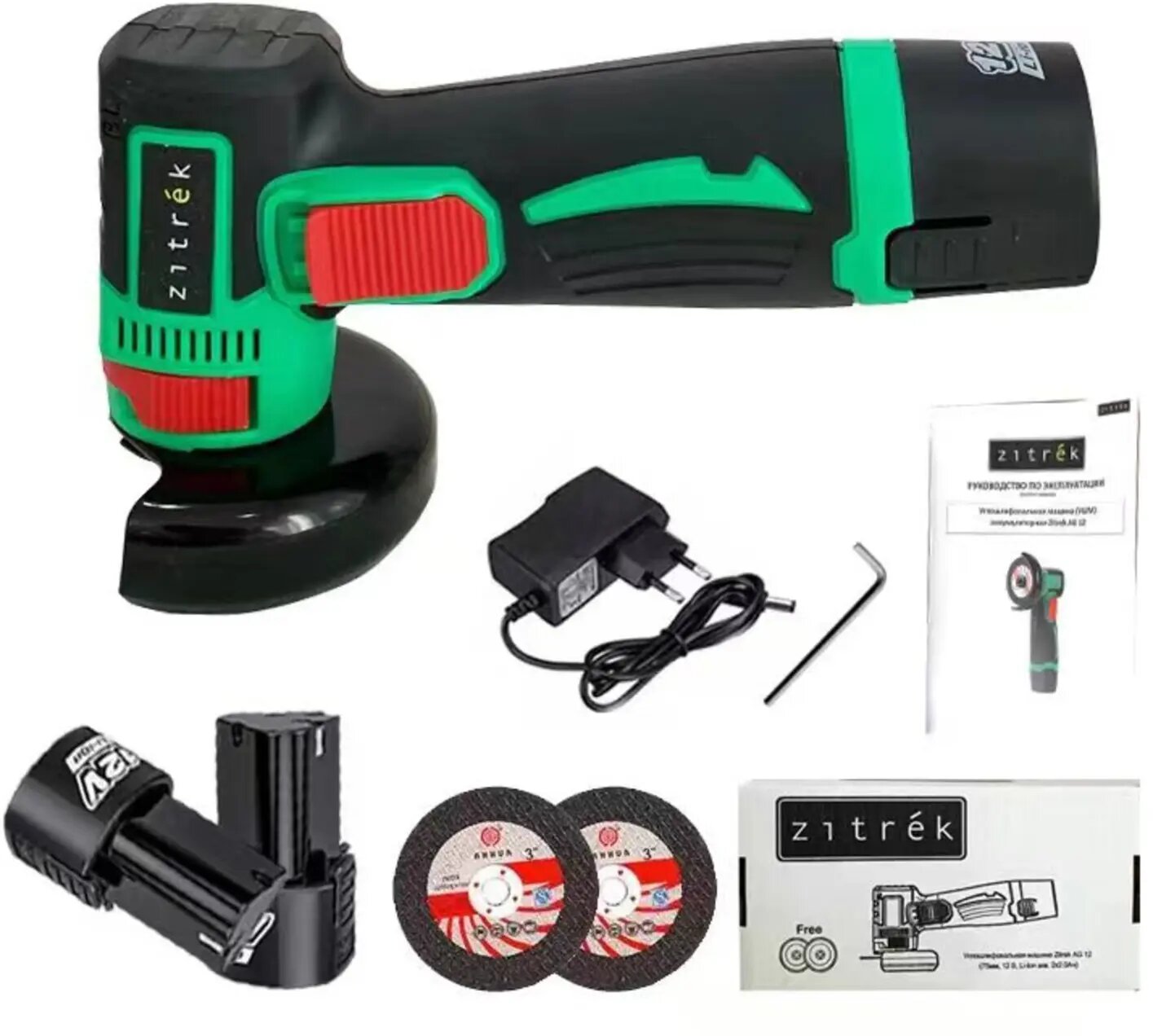 Углошлифовальная машина ZITREK AG 12, 2*12B 2Ач Li-Ion, 75мм
