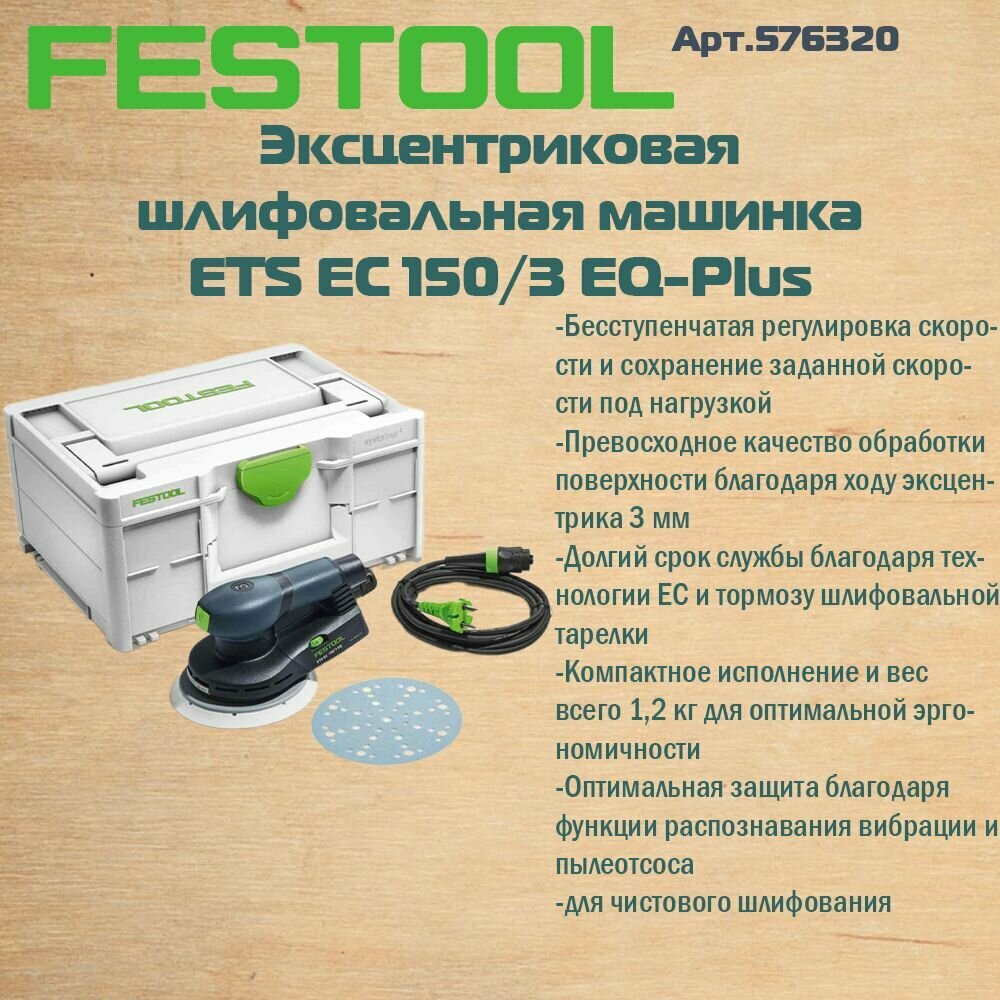 Эксцентриковая шлифмашинка Festool ETS EC 150/3 EQ Plus интересное: