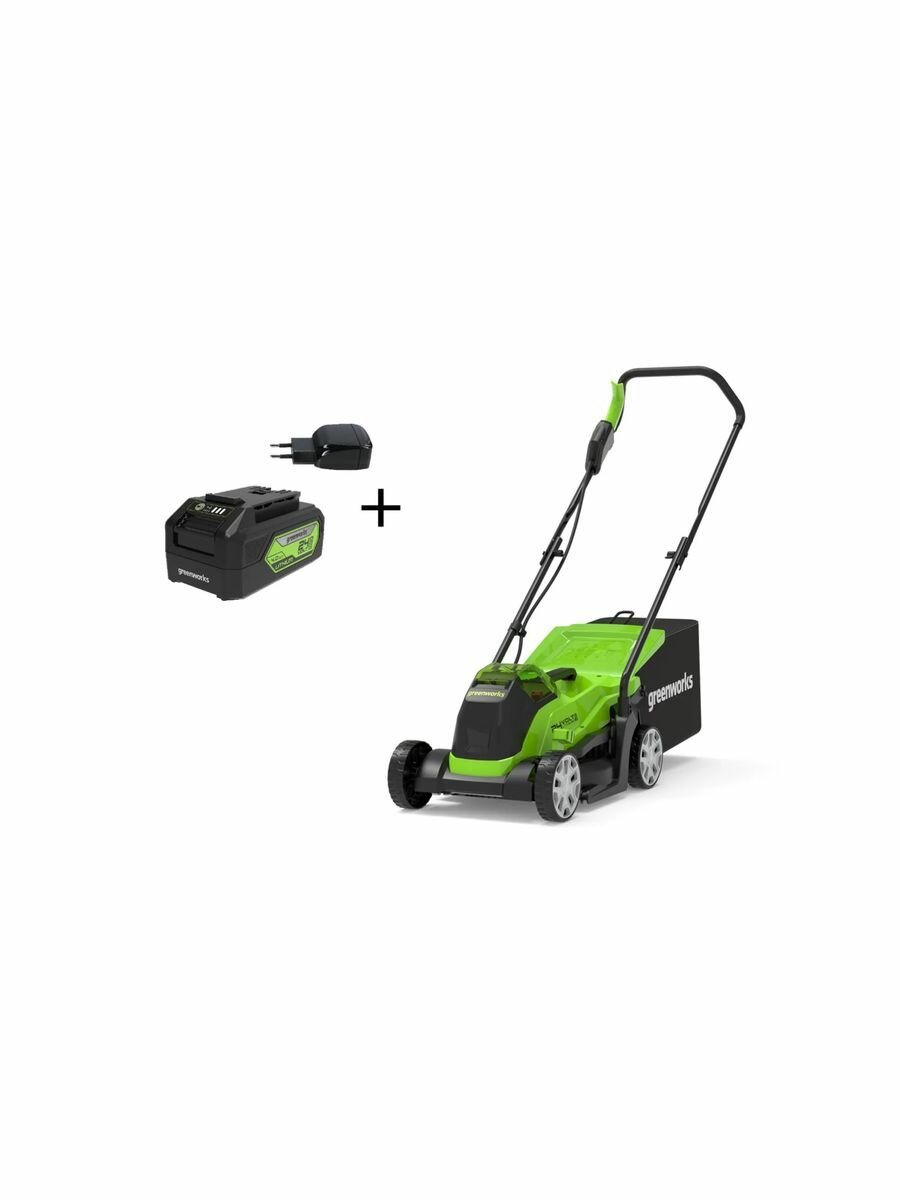 GreenWorks GD24LM33k4, 24v, 33 см, 1хАКБ 4Ач и ЗУ Газонокосилка аккумуляторная (2516107UB)