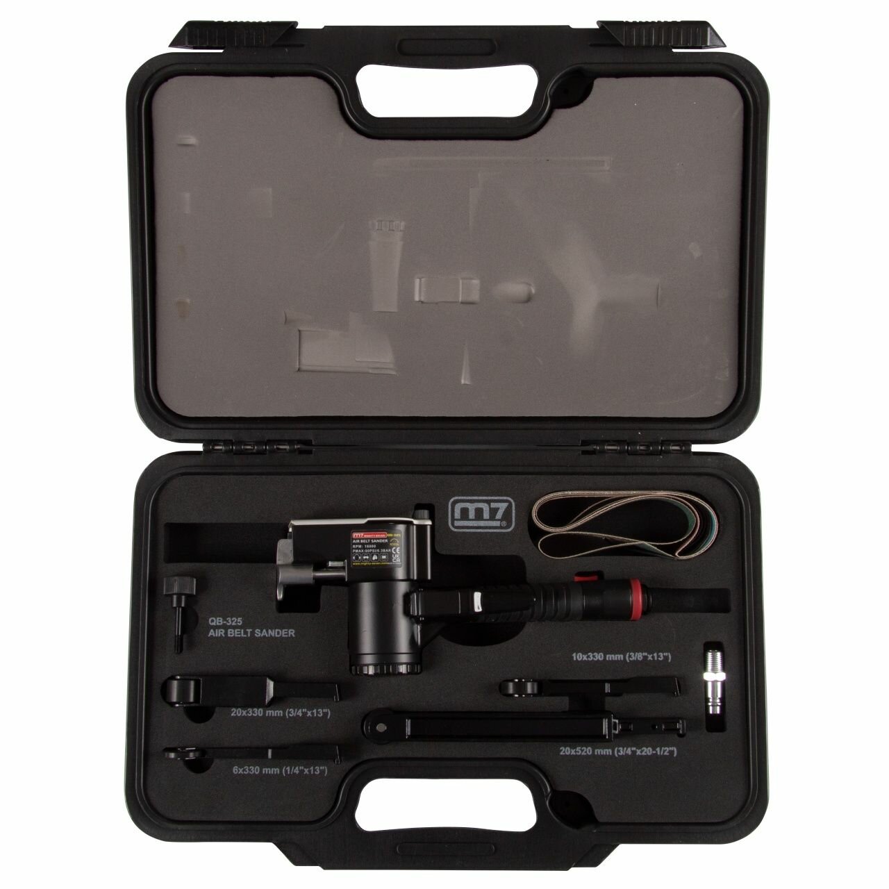 MIGHTY-SEVEN QB325N MIGHTY SEVEN Пневматическая ленточная шлифовальная машина, 16 000 об/мин, 4 насадки, кейс
