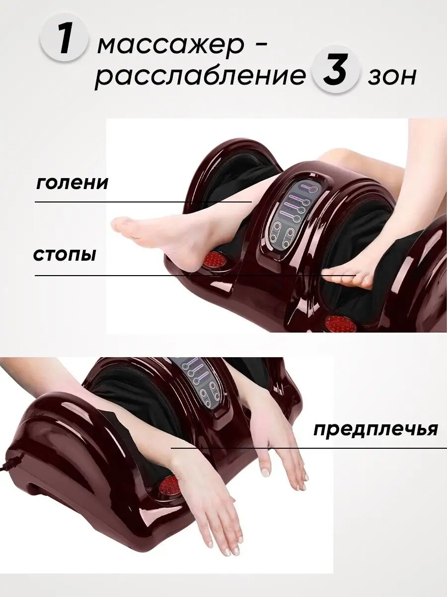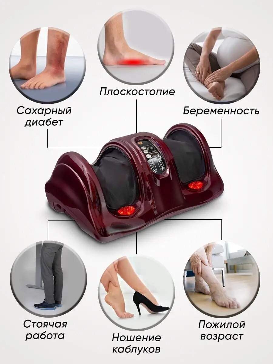 Массажер для ног, стоп, рук и икр электрический Classmark Шиацу с пультом ДУ, выбор зоны массажа, 4 автоматических программы, регулировка скорости и интенсивности / вибромассажер, бордовый