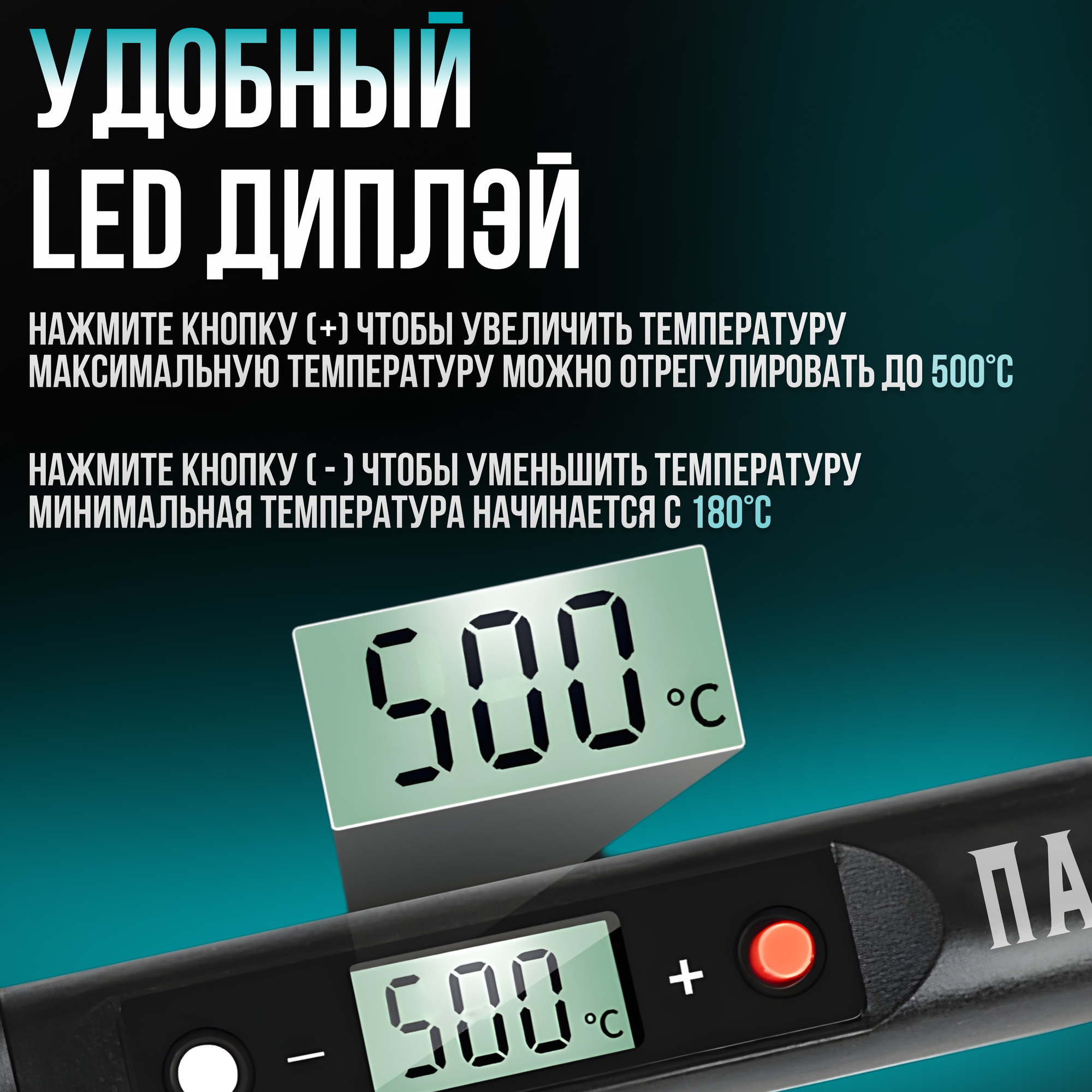 Паяльный набор "Паялово" паяльник электрический с ЖК дисплеем и керамическим нагревателем 80 Вт