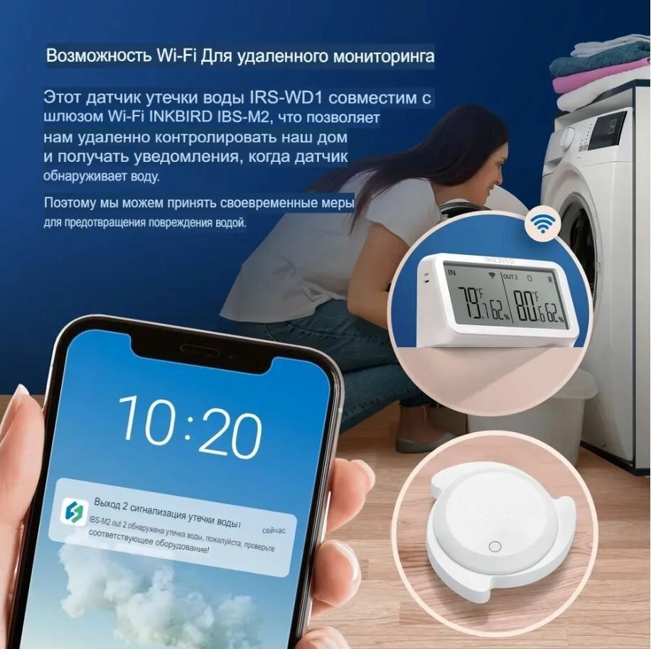 Датчик протечки воды INKBIRD IRS-WD1 беспроводной интересное: