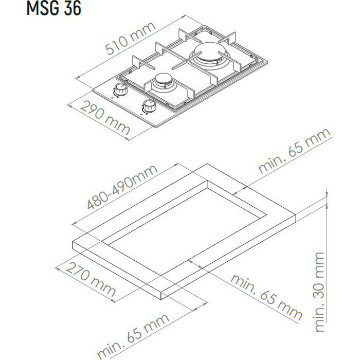 Встраиваемая газовая варочная поверхность Домино Monsher MSG 36 Noir (модификация 2023 года)