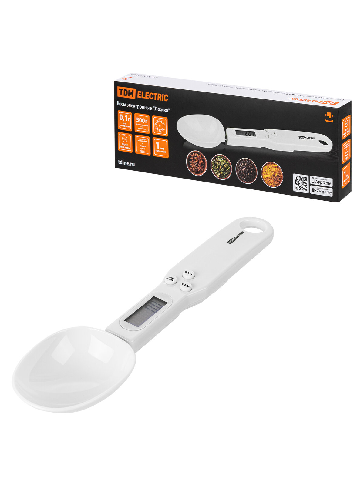 TDM Весы электронные "ложка", деление 0,1 г, макс. 500 г, белый, SQ4025-0005