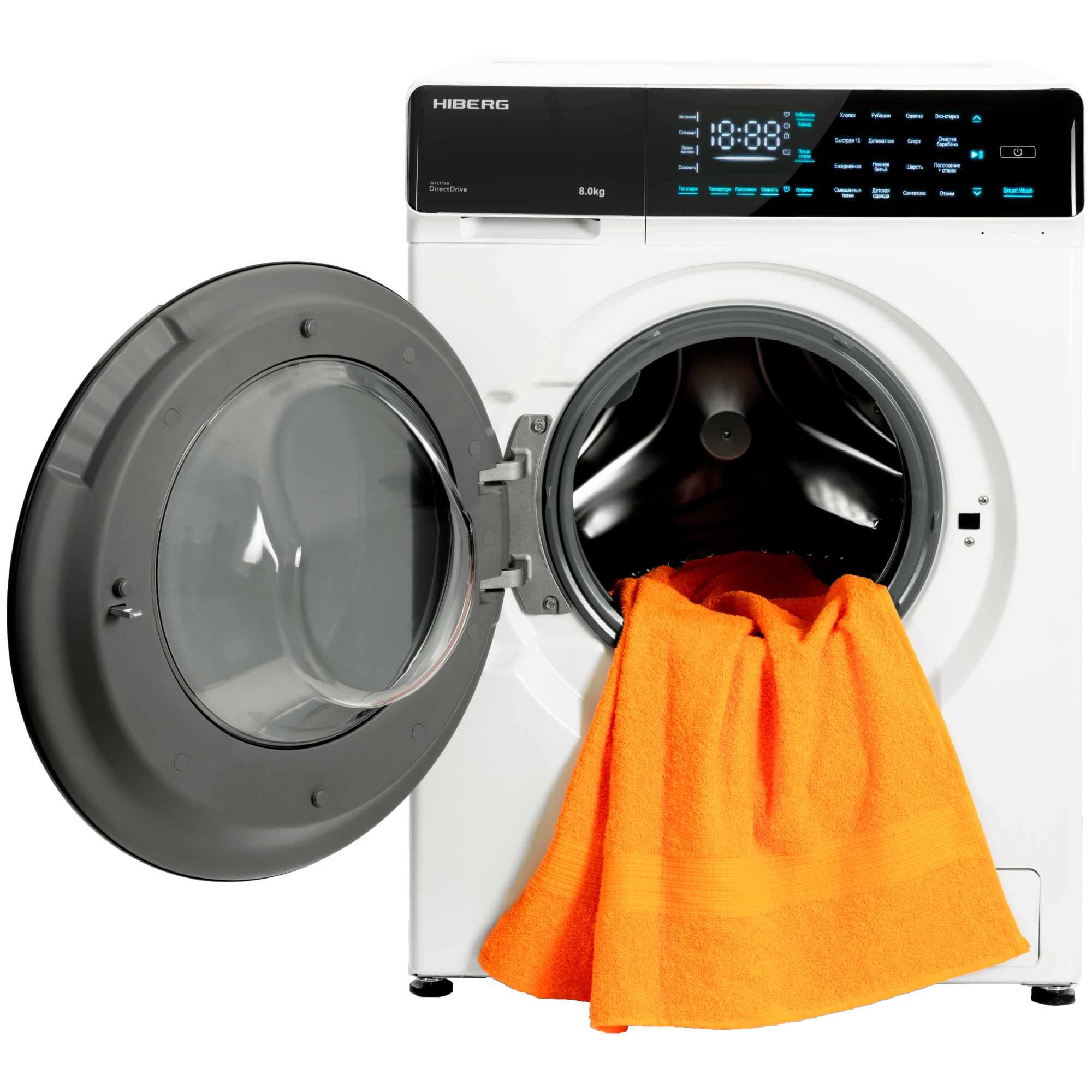 Стиральная машина HIBERG i-DDQ9 - 812 W, инверторная, 8 кг загрузка, 1200 об/мин, 16 программ, Smart wash, таймер, белый
