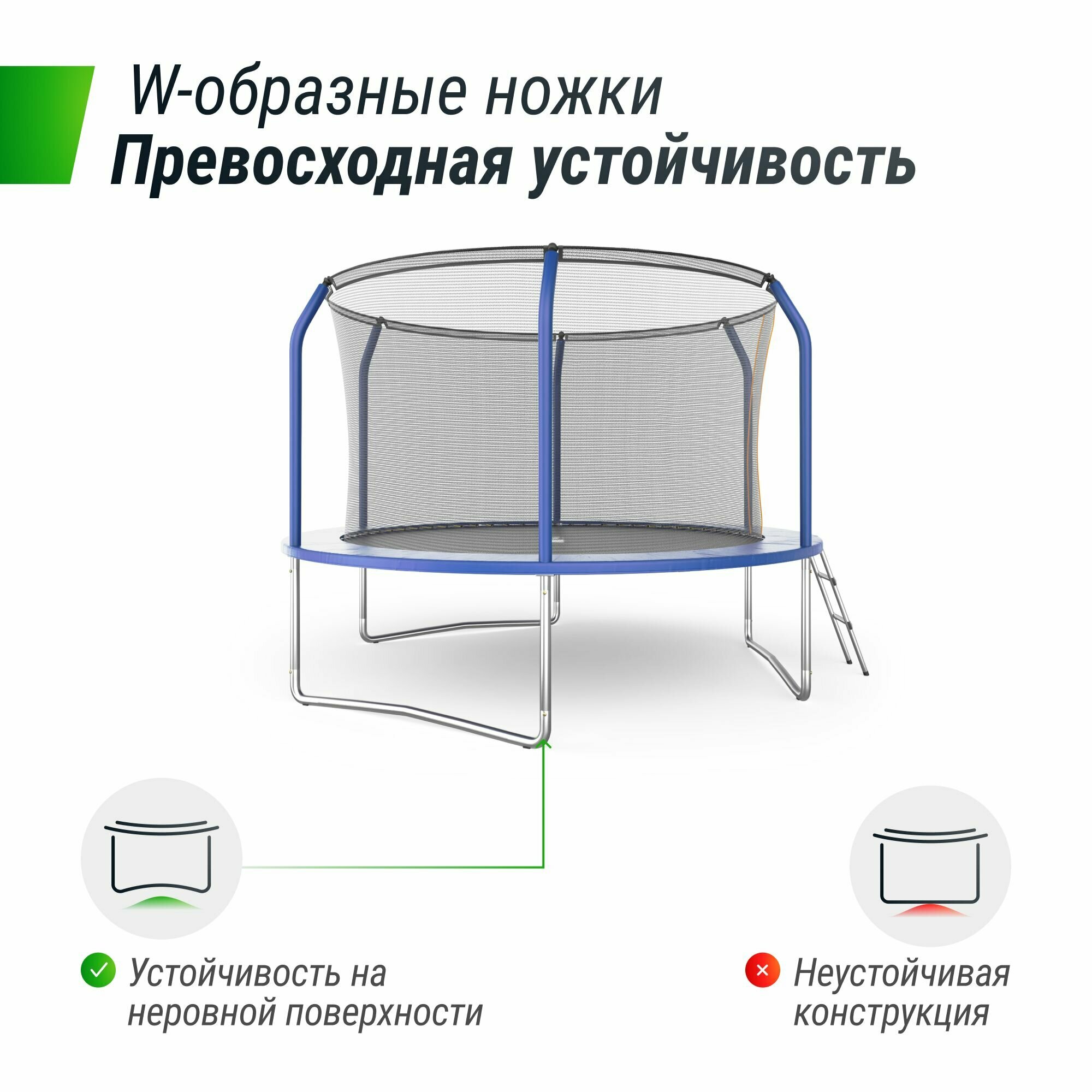 Батут с внутренней сеткой UNIX Line SUPREME BASIC 488 см (зеленый)