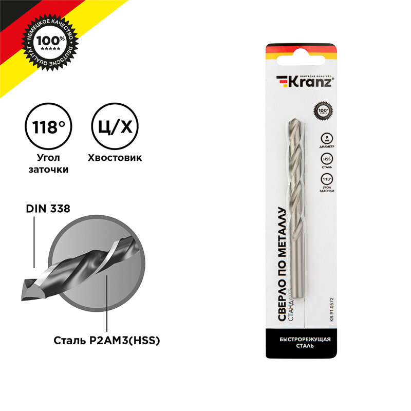 Сверло по металлу 9.0мм HSS DIN 338 (уп.1шт) KR-91-0572 Kranz ( 1упак. ) интересное: