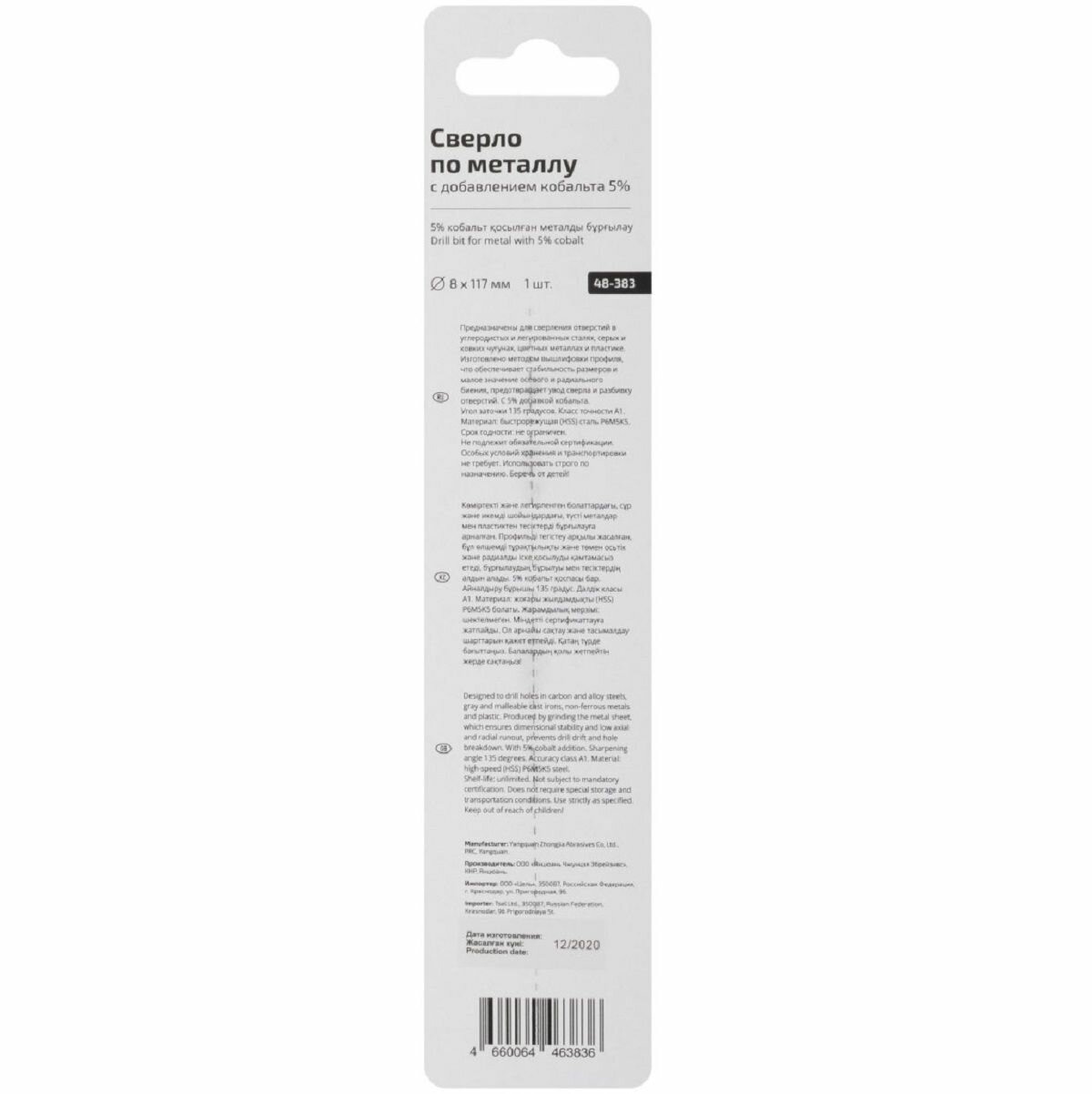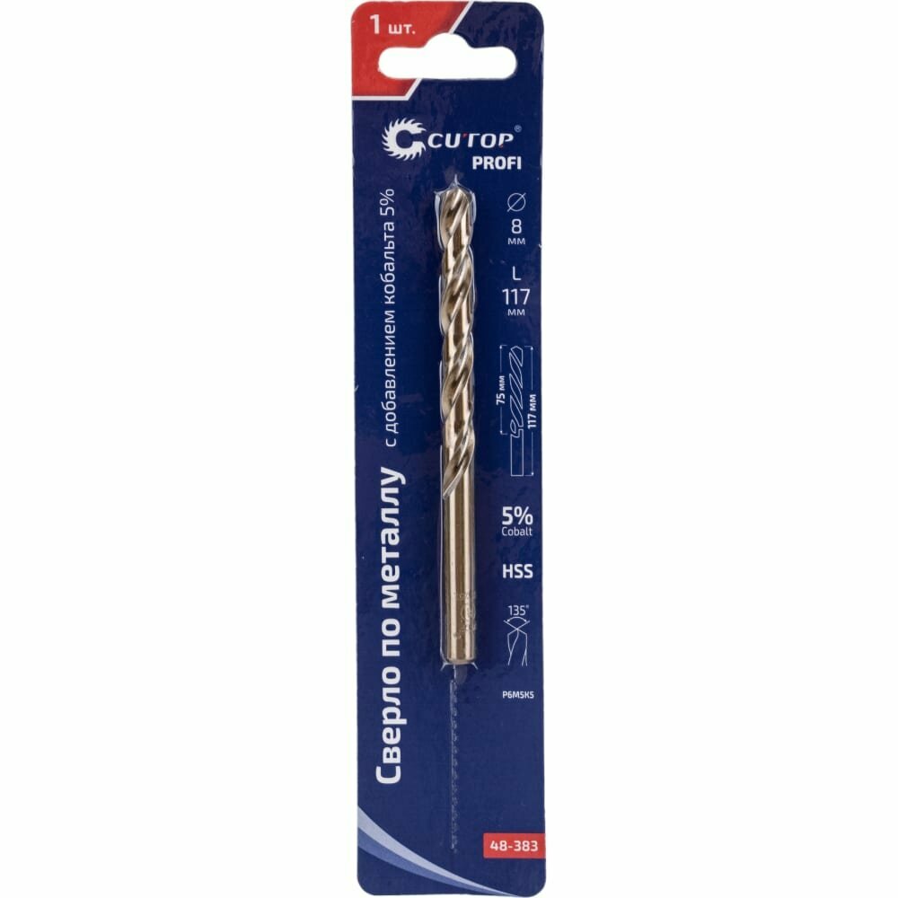 Сверло по металлу кобальтовое HSS PROFI 8 x 117 мм CUTOP 48-383