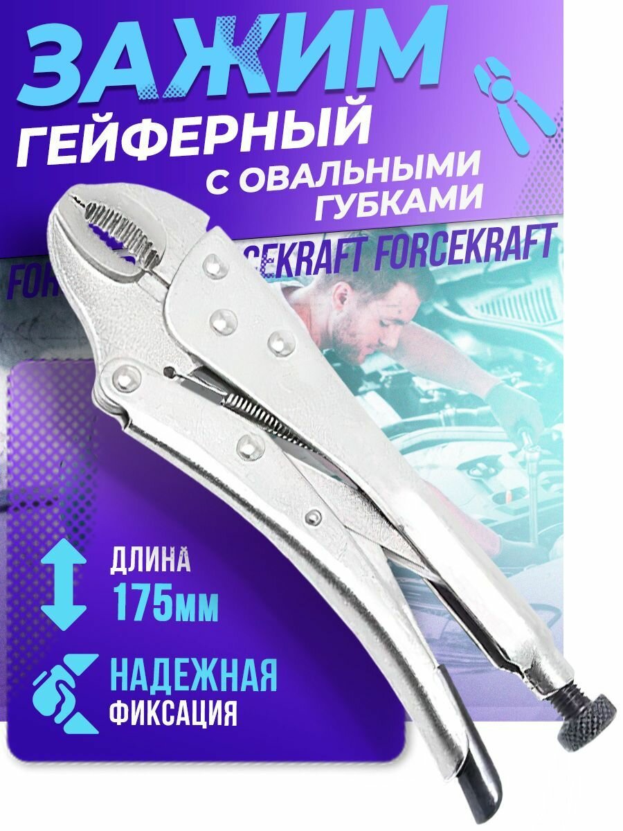 Клещи гейферные, 175 мм, 7 inch, с овальными губками, в блистере, FORCEKRAFT FK614175 (1 шт.)