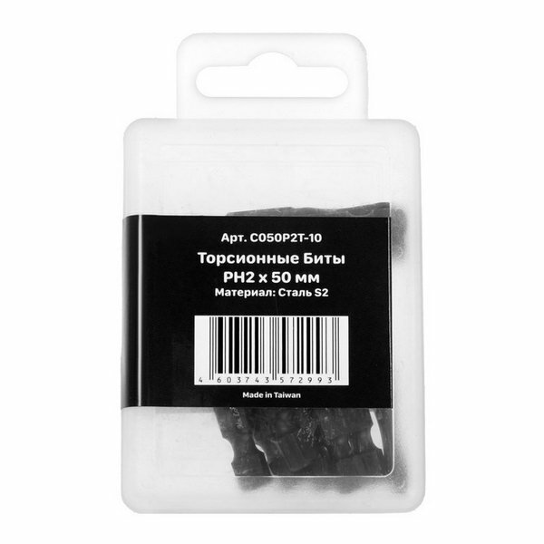 Биты профессиональные C050P2T-10, Japan S2, Torsion, PH2 x 50 мм, PP-box, 10 шт.