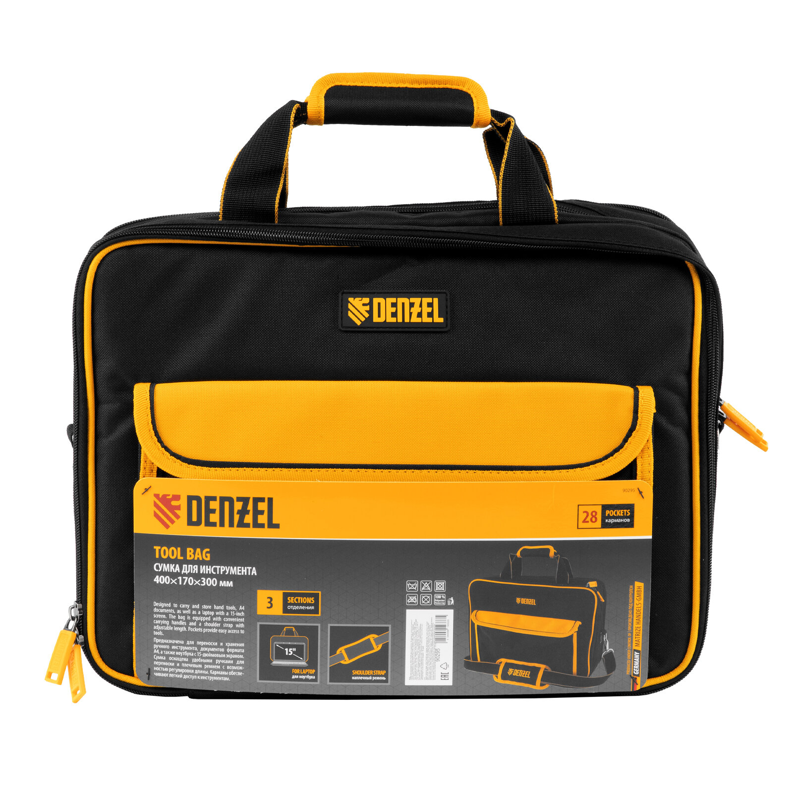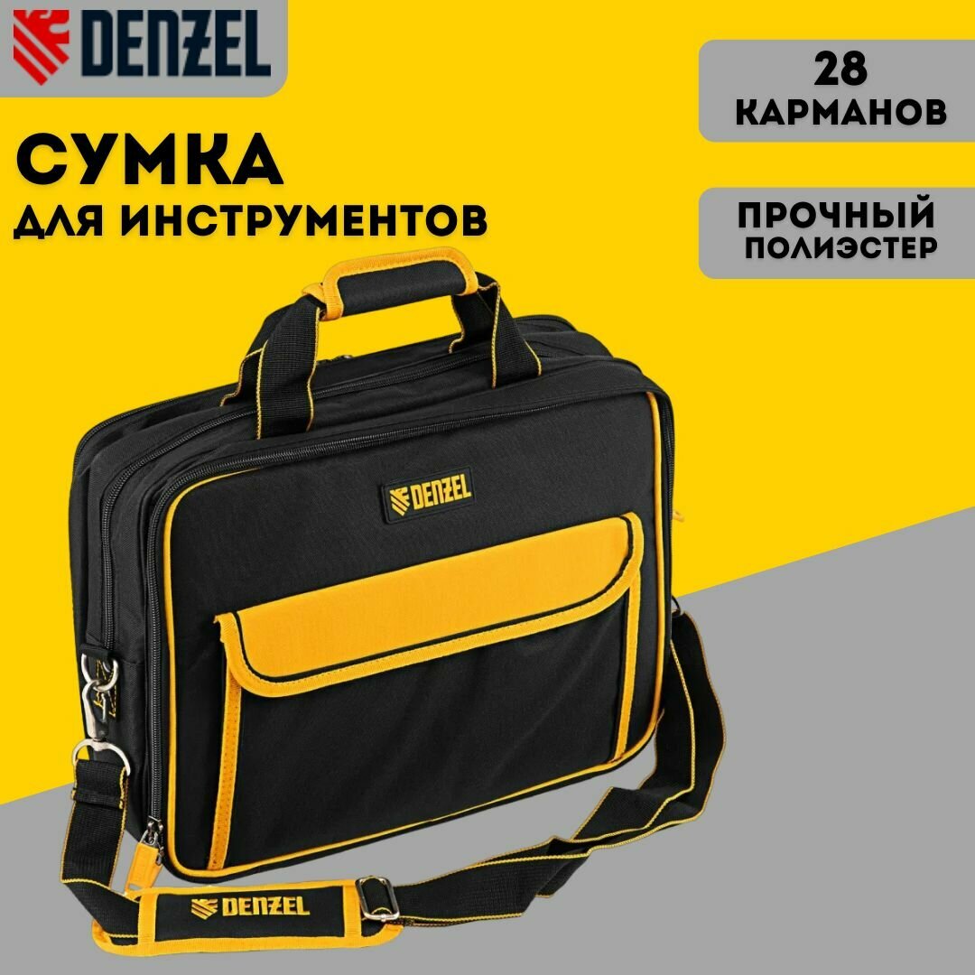 Сумка для инструмента Denzel 400x170x300 мм, 3 отделения, 28 карманов, наплечный ремень 90295
