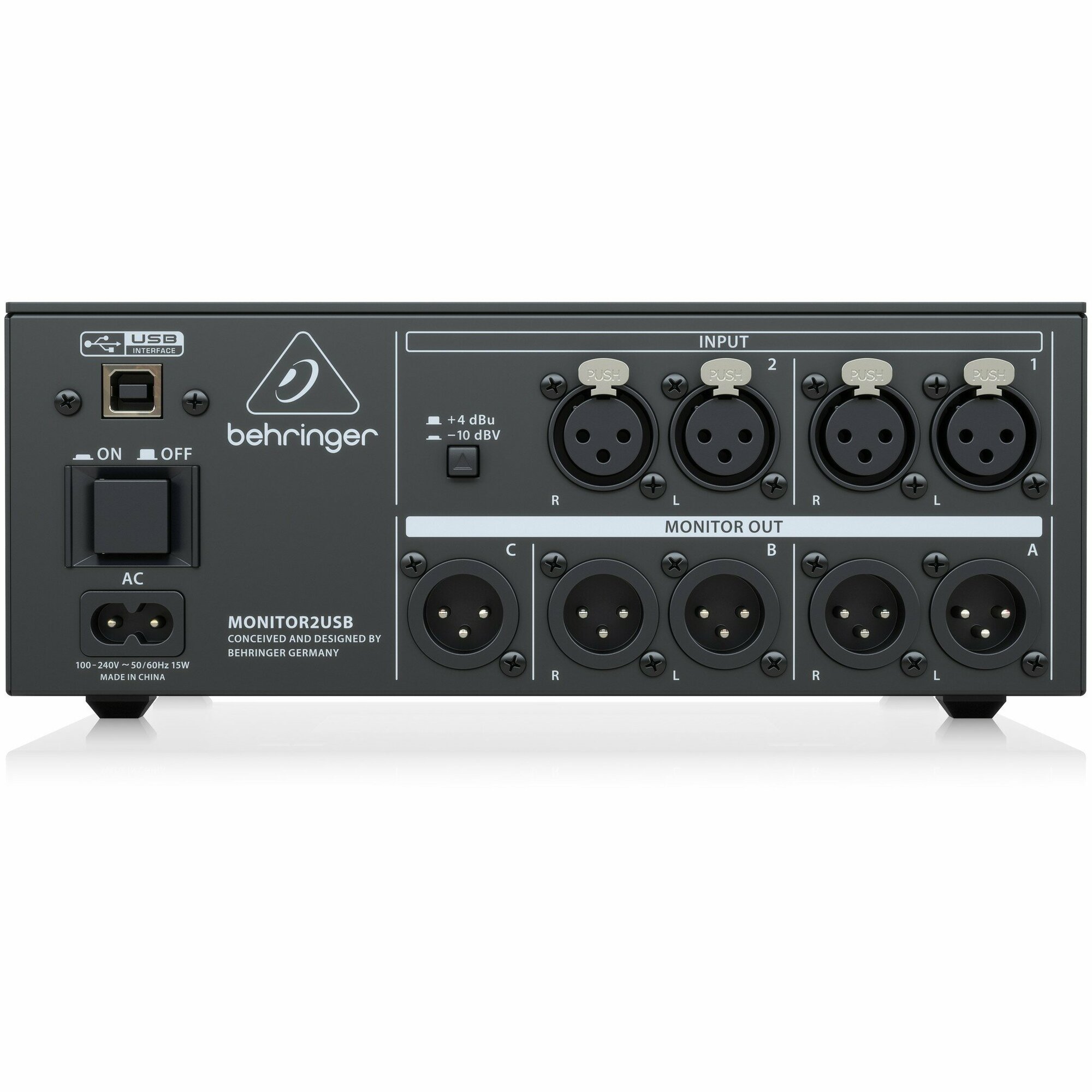 Behringer MONITOR2USB контроллер студийных мониторов, наушников и USB-аудио интерфейс, 2 входа, выход на 2 пары мониторов+доп.моновыход, 2 выхода на наушники