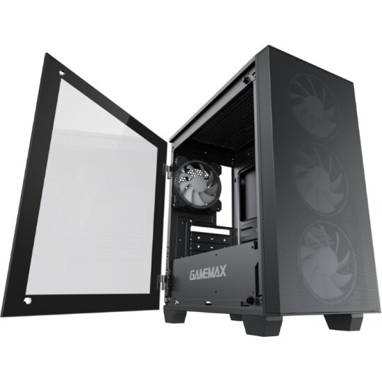 Корпус GameMax mATX case, black, w/o PSU, w/1xUSB3.0+1xUSB2.0, w/3x12cm ARGB front fans GMX-12-Rainbow-D), w/1x12cm ARGB rear fan (GMX-12-Rainbow-D)