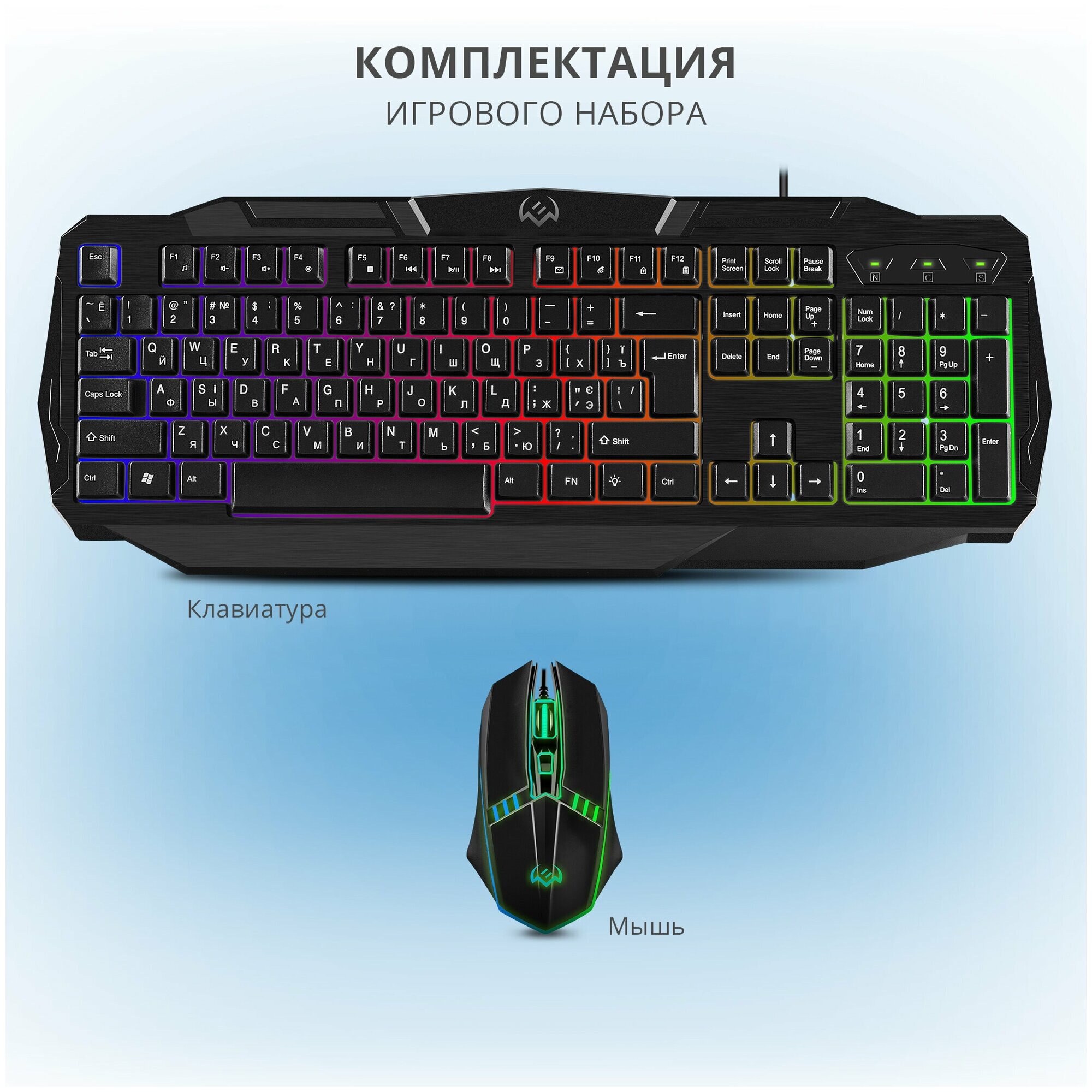 Игровой набор клавиатура+мышь GS-9100 (104кл.+12Fn, 800-1600 DPI, 3+1кн., подсветка)