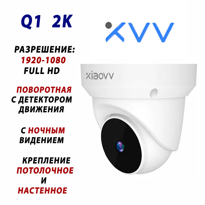 Потолочная/настенная поворотная IP-камера видеонаблюдения с разрешением 1920x1080 FHD Xiaomi Xiaovv Q1 Smart PTZ Camera (XVV-3620S-Q1) + ночное видение, Глобальная EU версия