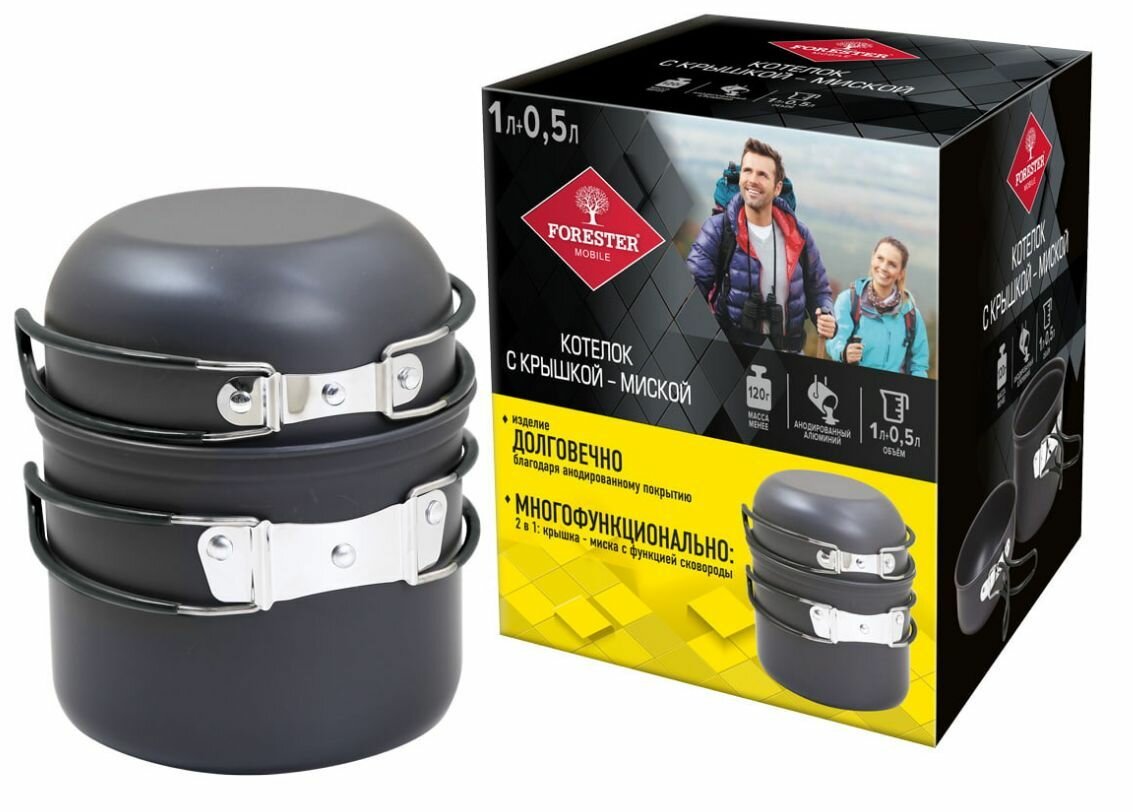 FORESTER MC-5 Котелок Forester 1 л с крышкой и миской 0,5 л