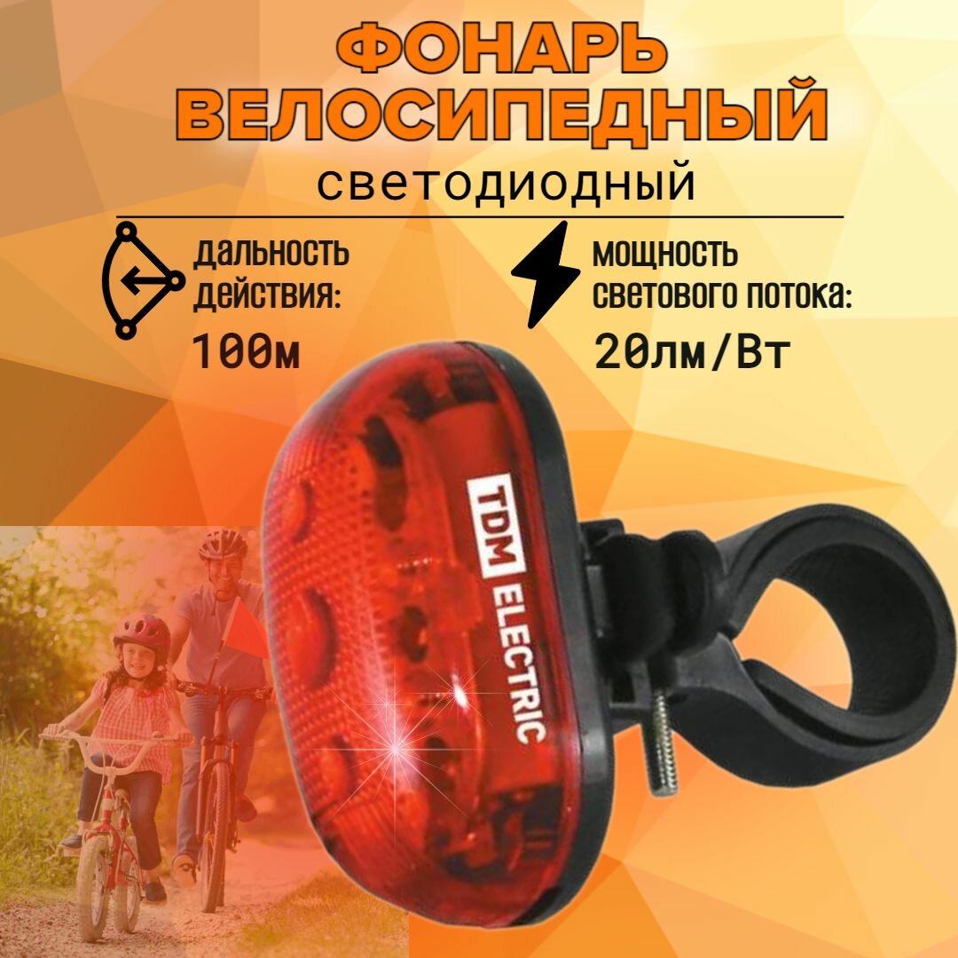 Купить Фонарь Велосипедный светодиодный, 3 режима, 3 LED, 20 лм/Вт, 2*AAA, IP44, 100 метров, TDM