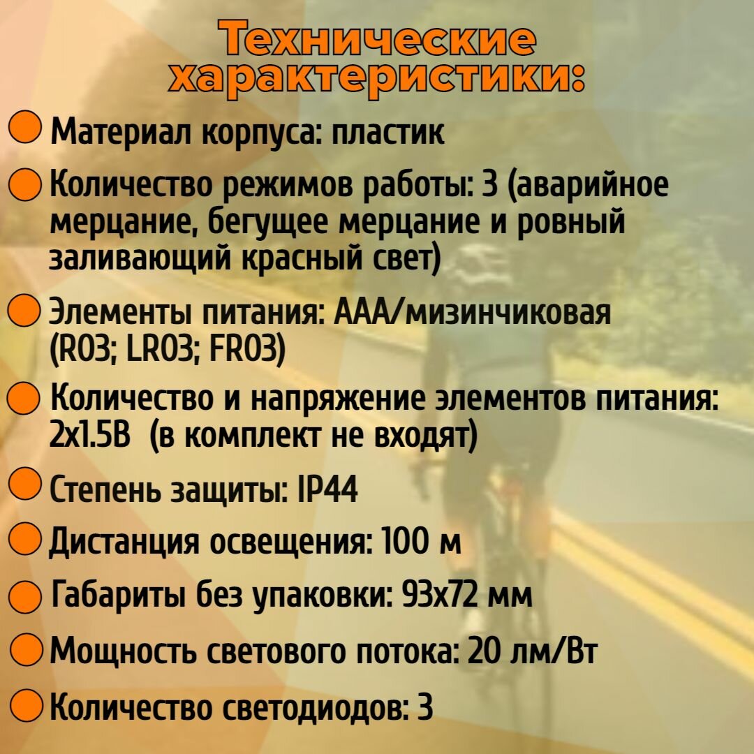 СохранитьФонарь Велосипедный светодиодный, 3 режима, 3 LED, 20 лм/Вт, 2*AAA, IP44, 100 метров, TDM интересное: