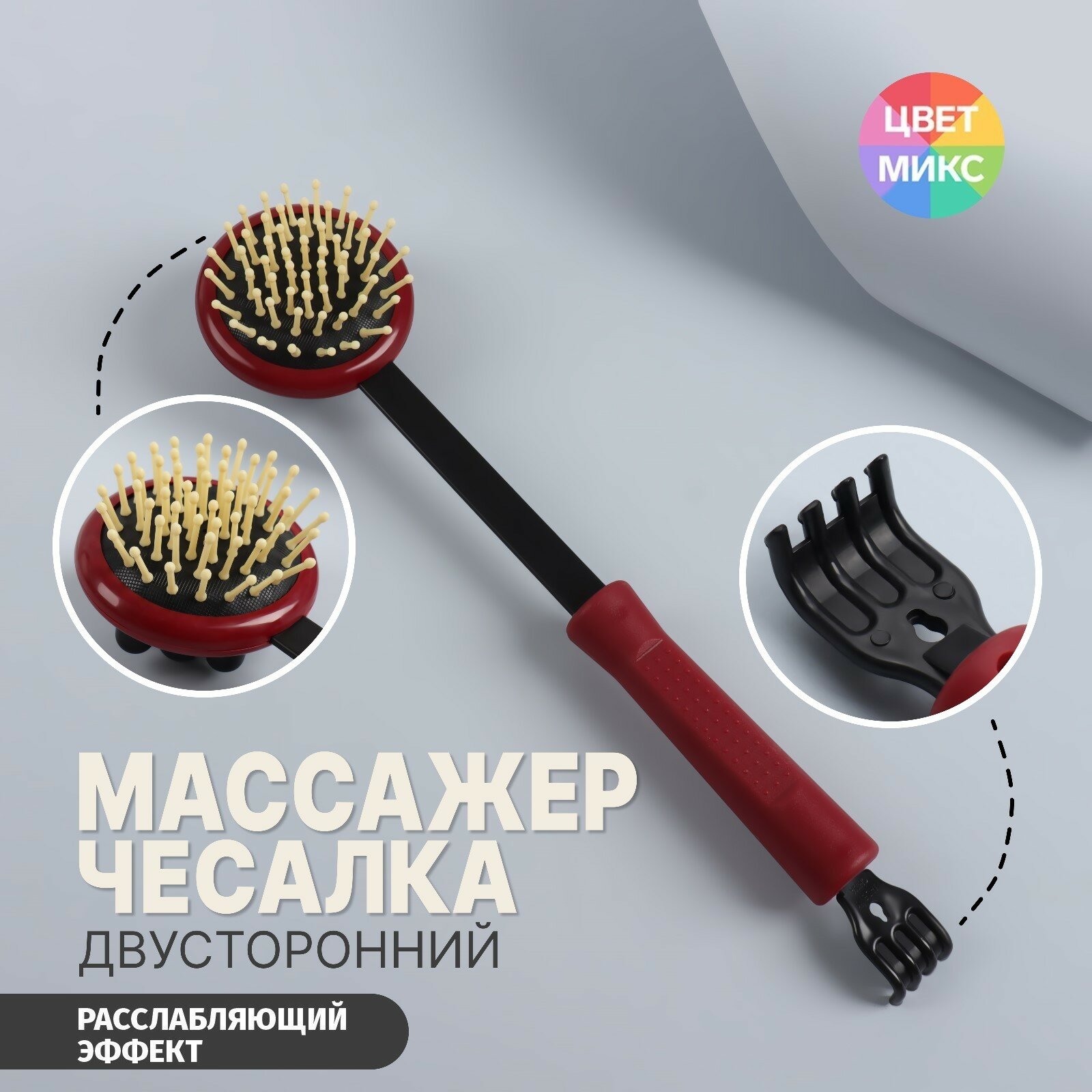 Массажёр-чесалка «Отдых», двусторонний, универсальный, 35 × 6 × 8 см, цвет красный/чёрный (арт. 604326) интересное: