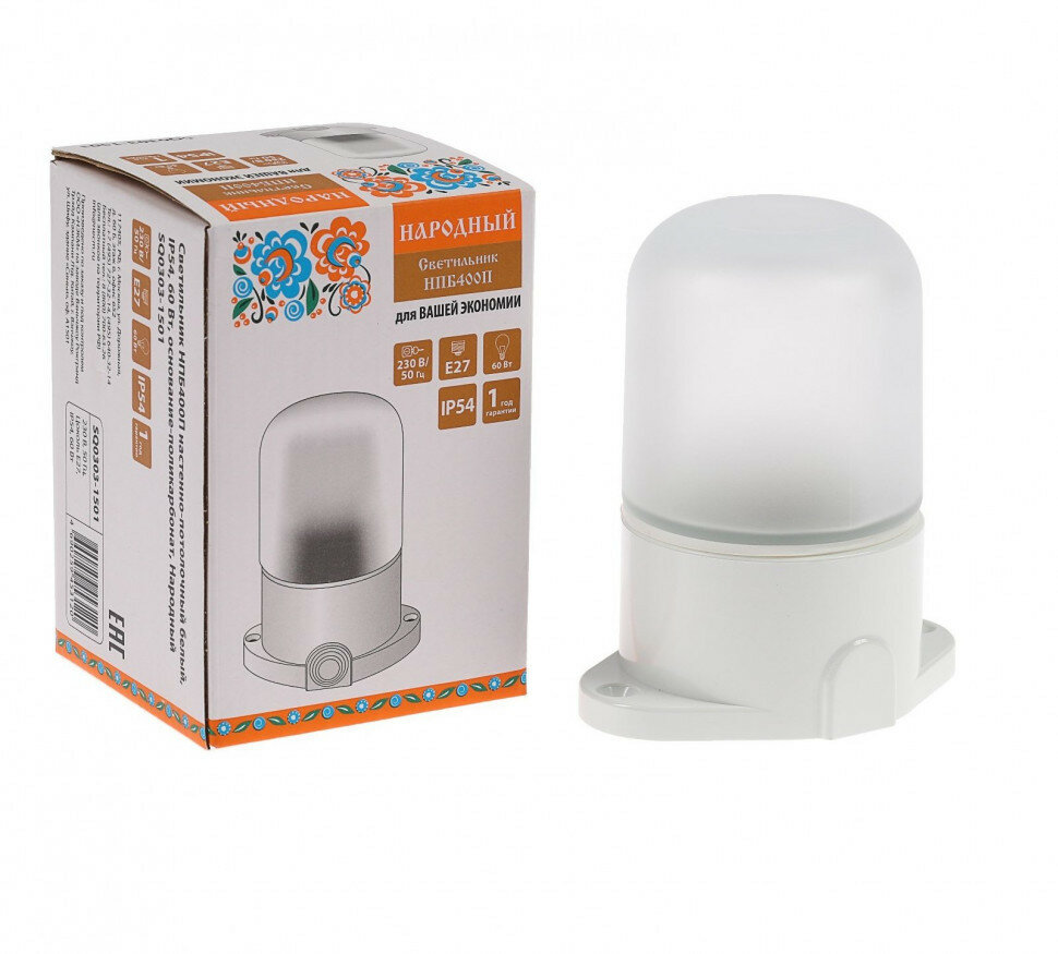 Купить TDM св-к НПБ400 баня/сауна настен-потолоч. бел. IP54 60 Вт основание-поликарб. Народный SQ0303-1501