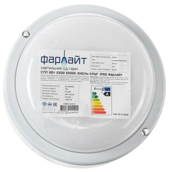 Светильник Фарлайт СПП 8Вт 230В 6500К 640Лм круг IP65 FAR002003 16168277