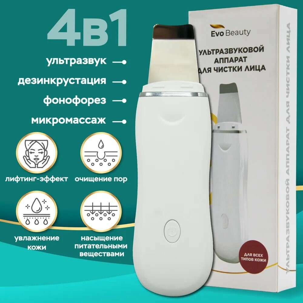 Аппарат для ультразвуковой чистки лица. Лифтинга, фонофорез, глубокое очищение кожи. Домашний аппарат Evo Beauty