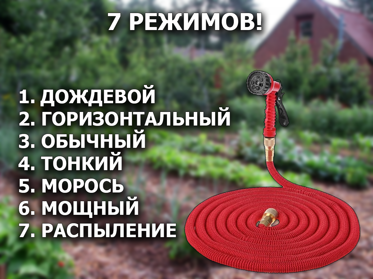 Садовый шланг поливочный, Шланг растягивающийся для полива до 25 метров, Шланг для дачи и сада с фитингами и распылителем интересное: