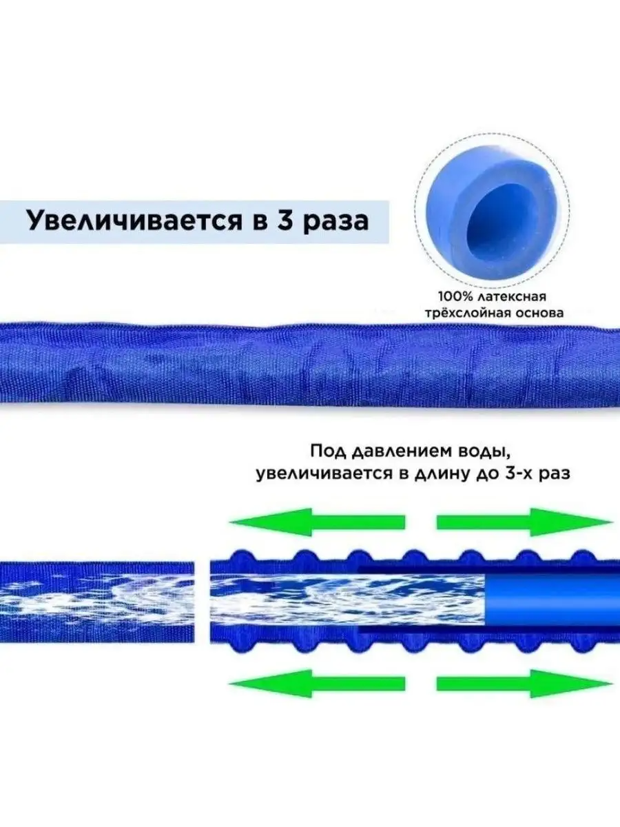Удлиняющийся Шланг Magic Hose, Шланг для полива синий (22,5 м)