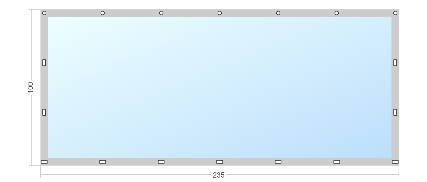 Купить Мягкое окно Софтокна 235х100 см, Прозрачная пленка 0,7мм, Скоба-ремешок, Серая окантовка, Комплект для установки