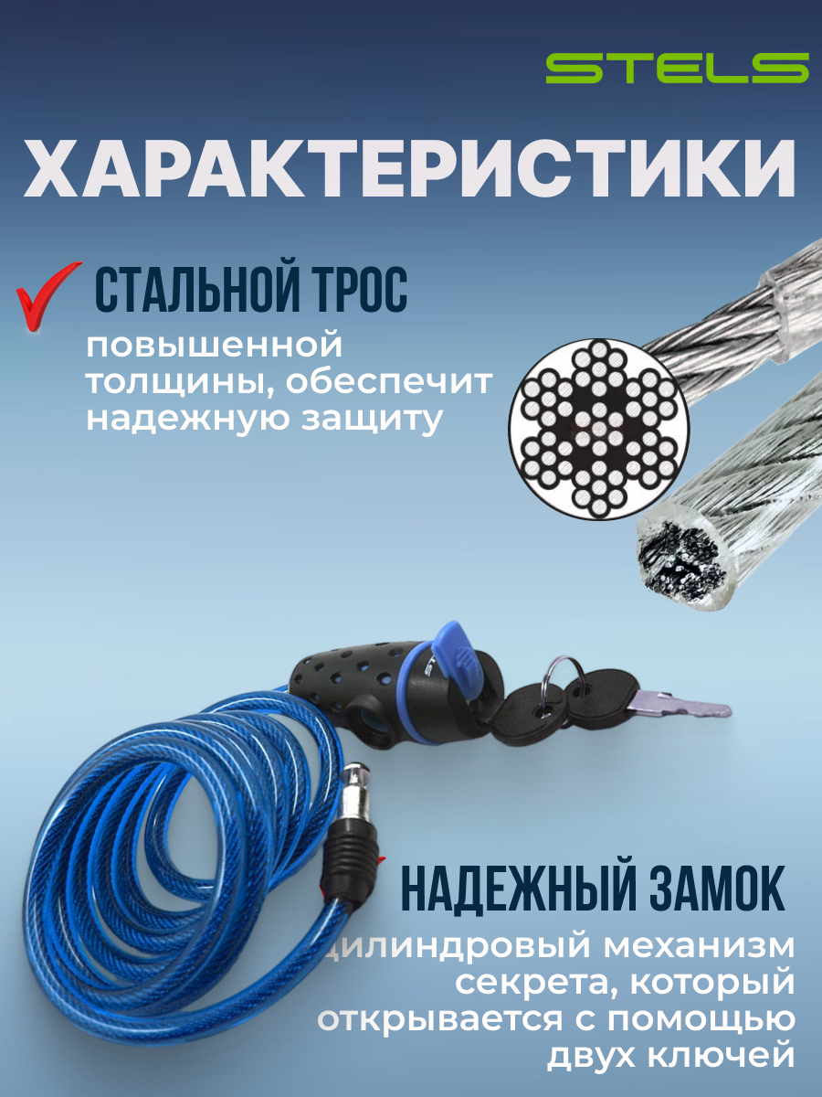 Троссовый замок с ключом 180см. STELS 87318 синий