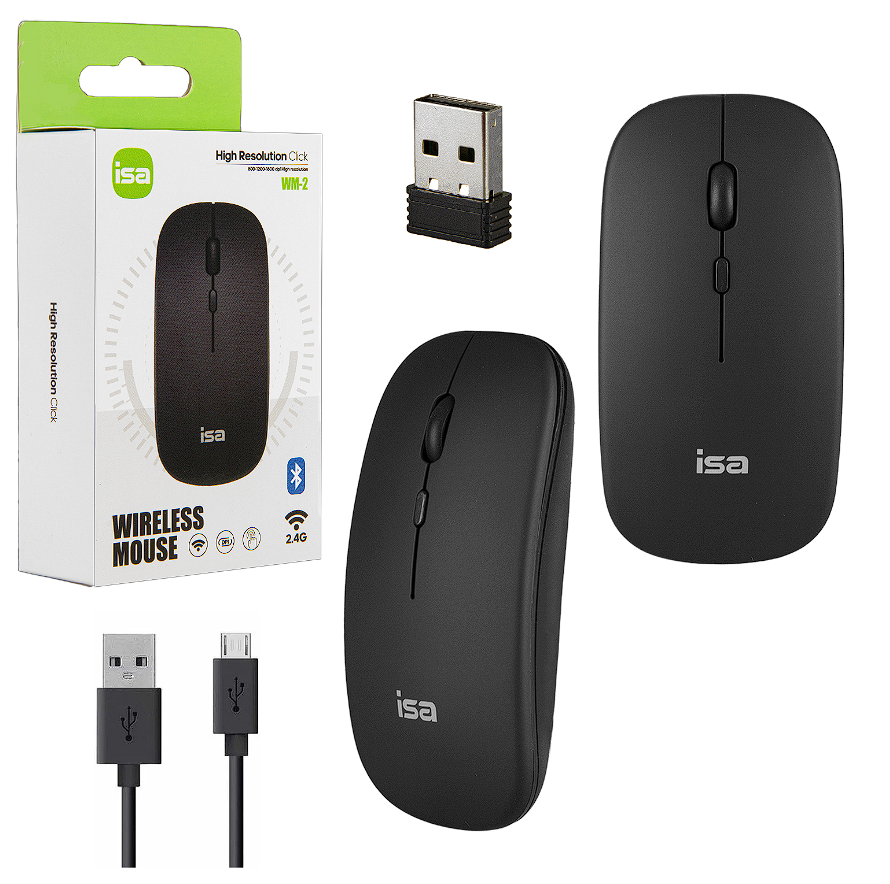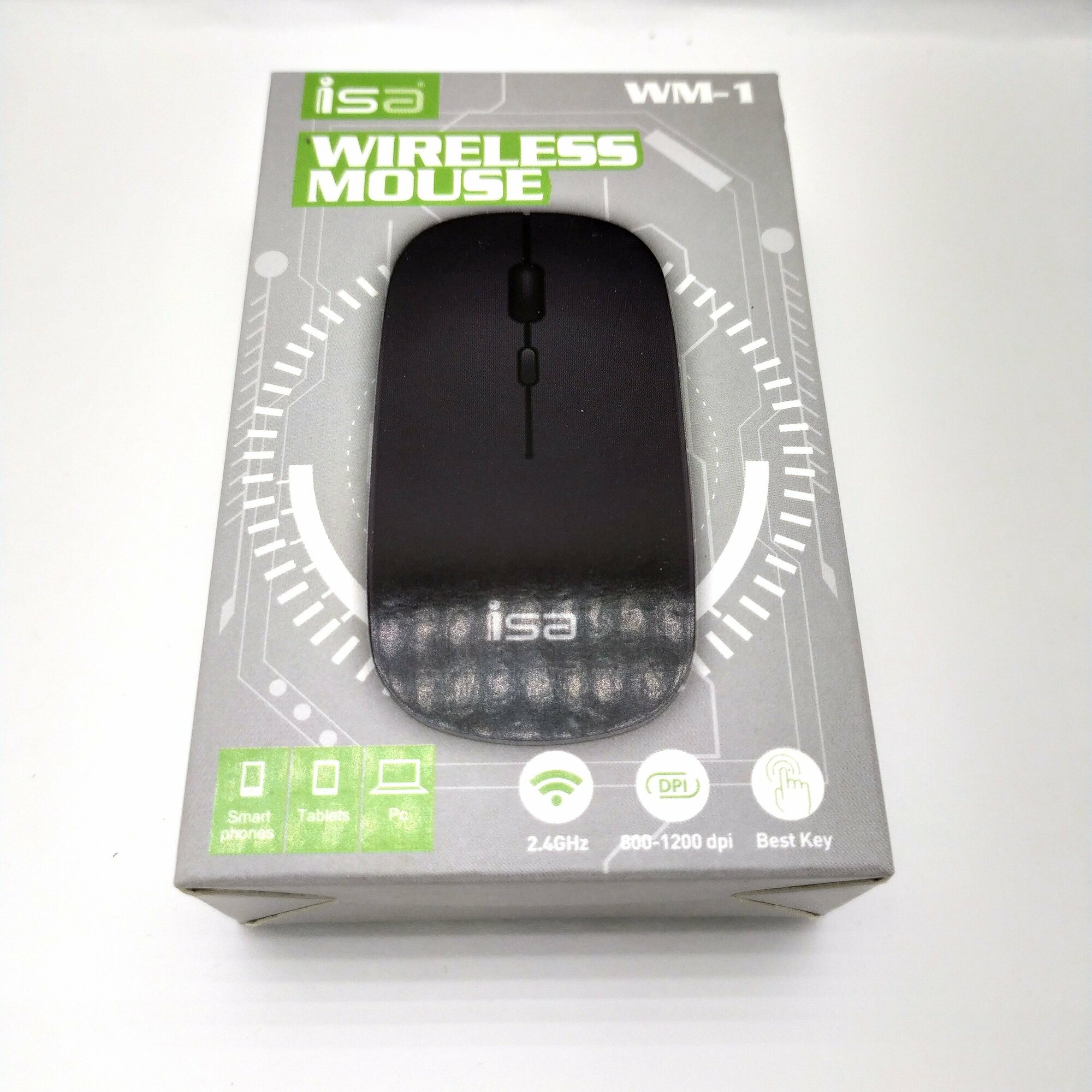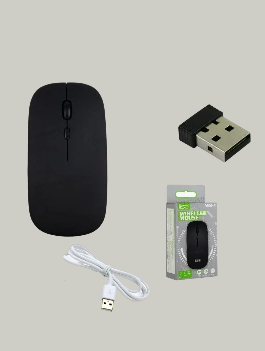 Мышь беспроводная бесшумная ISA WM-1, 500 mah, Plug & Play, , 500 mah, 1200DPI, Черный