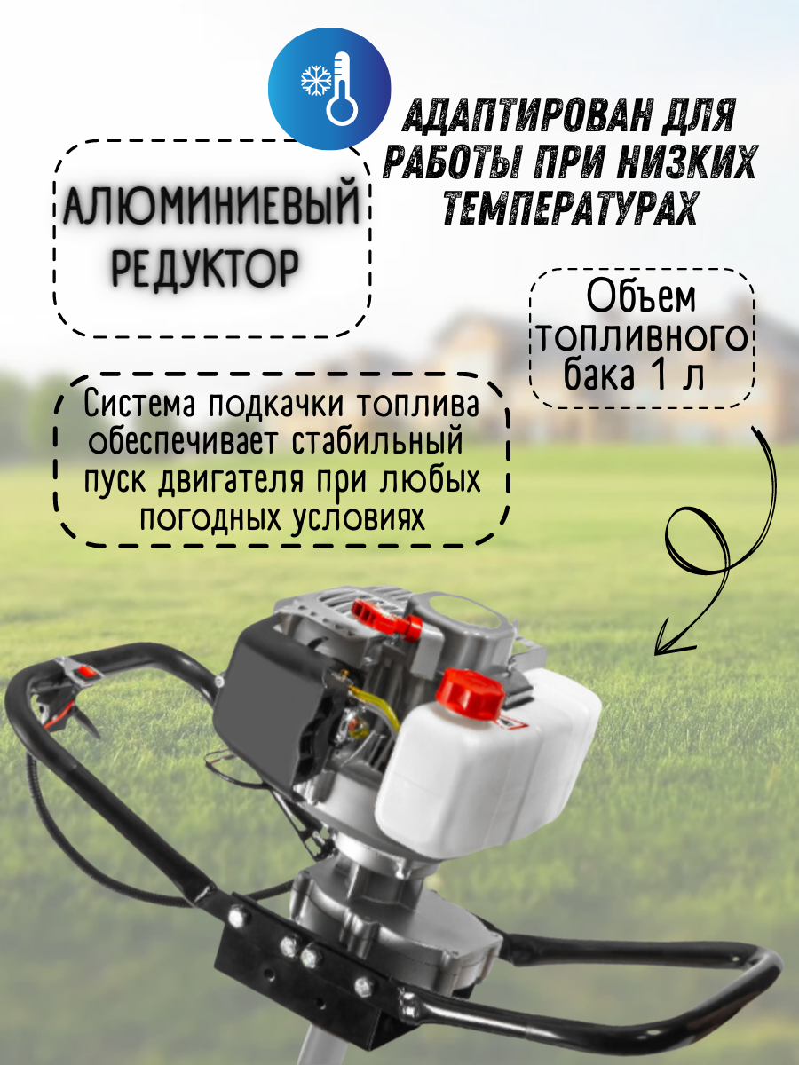 Мотобур (бензобур), d=60-200 мм, 52 см3, 1 оператор, ЗУБР
