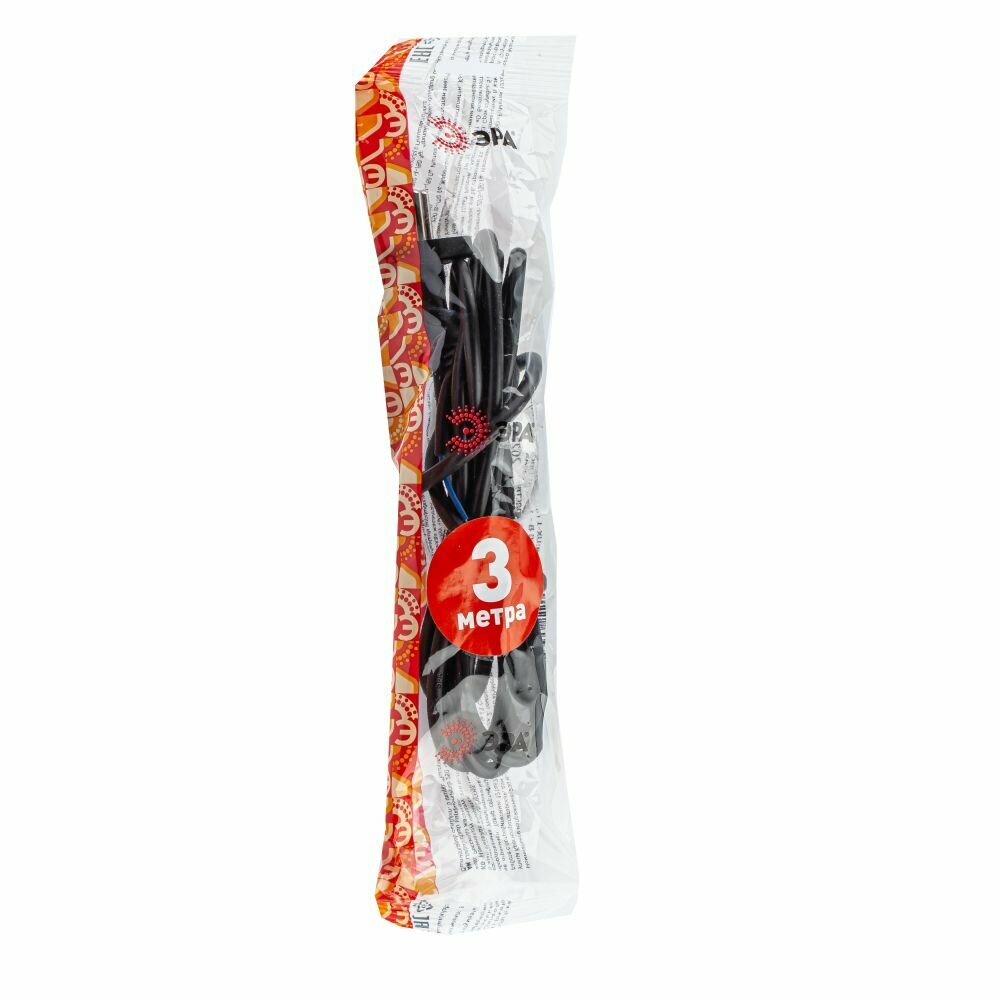 Шнур сетевой Эра UX-2х0,75 мм² с вилкой, 3 метра, ПВС, черный, IP20