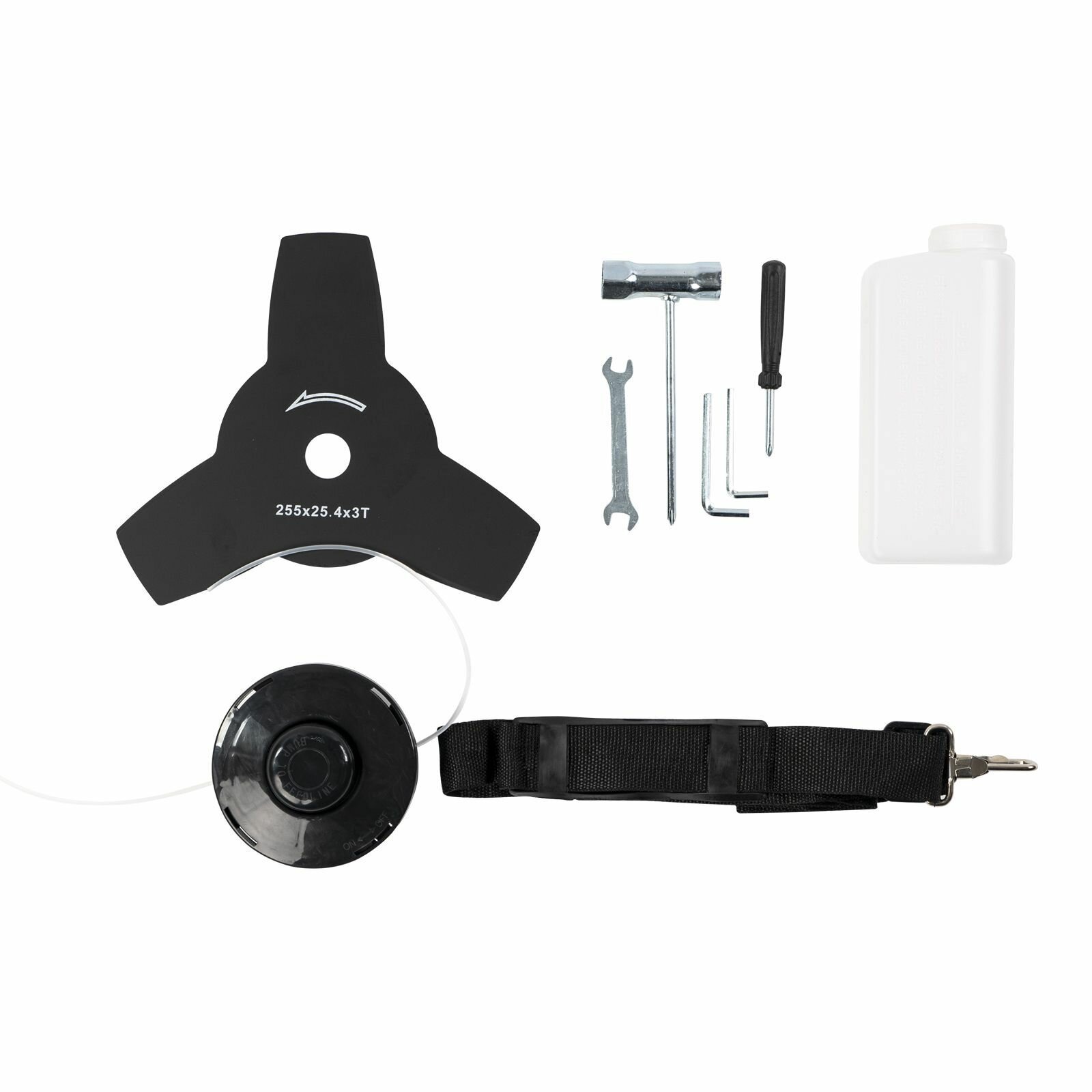 | Подробная комплектация | триммер, емкость для приготовления смеси, плечевой ремень, ключ шестигранный г-образный (2 шт), ключ свечной, ключ рожковый, отвертка, набор крепежа, катушка с леской, нож |