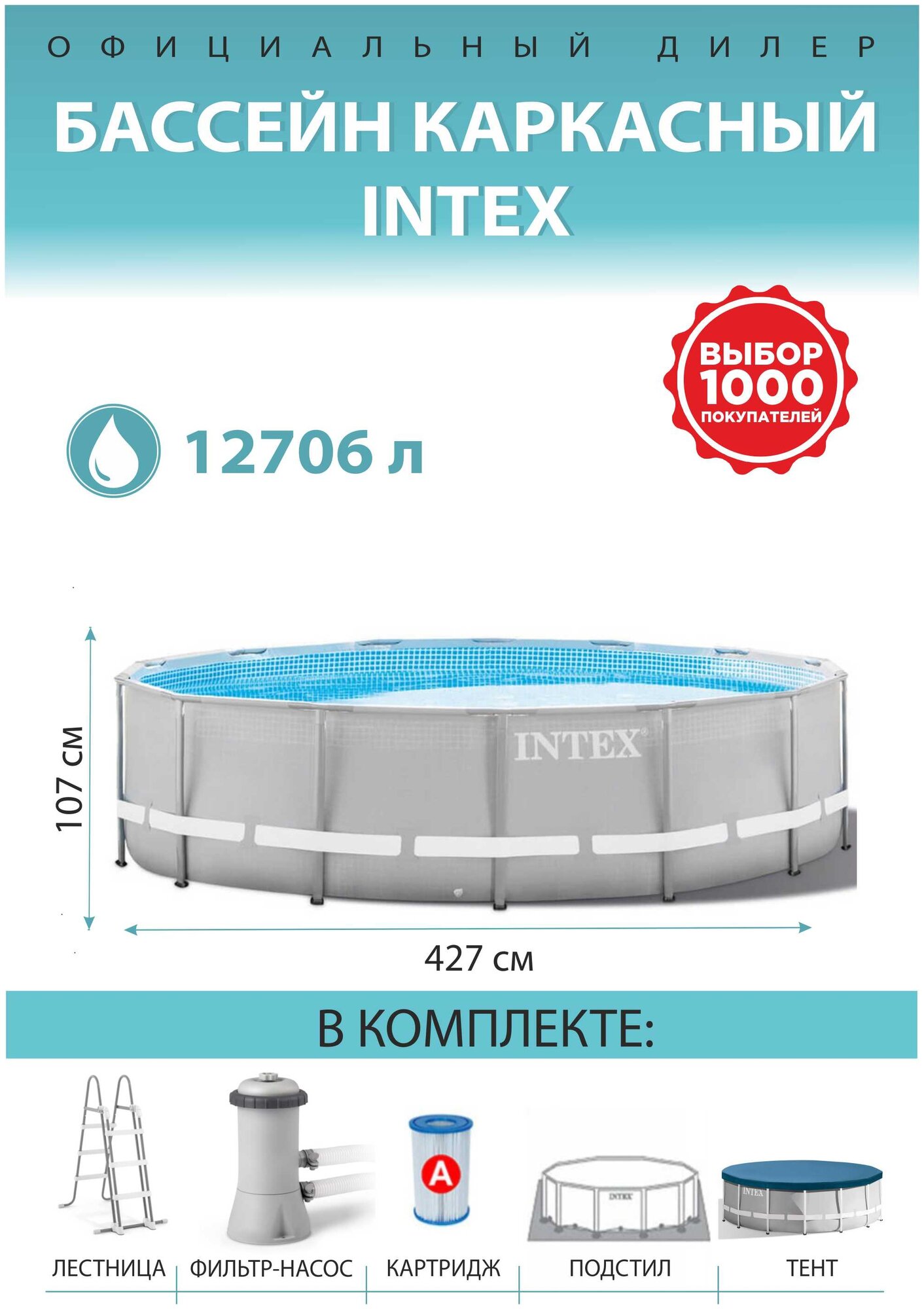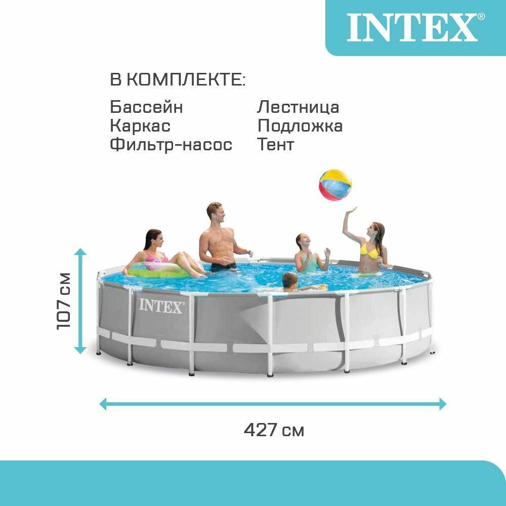 Бассейн каркасный Intex, 427х107 см, Prism Frame, 26742NP, фильтр-насос, лестница, подстилка, тент, 12706 л