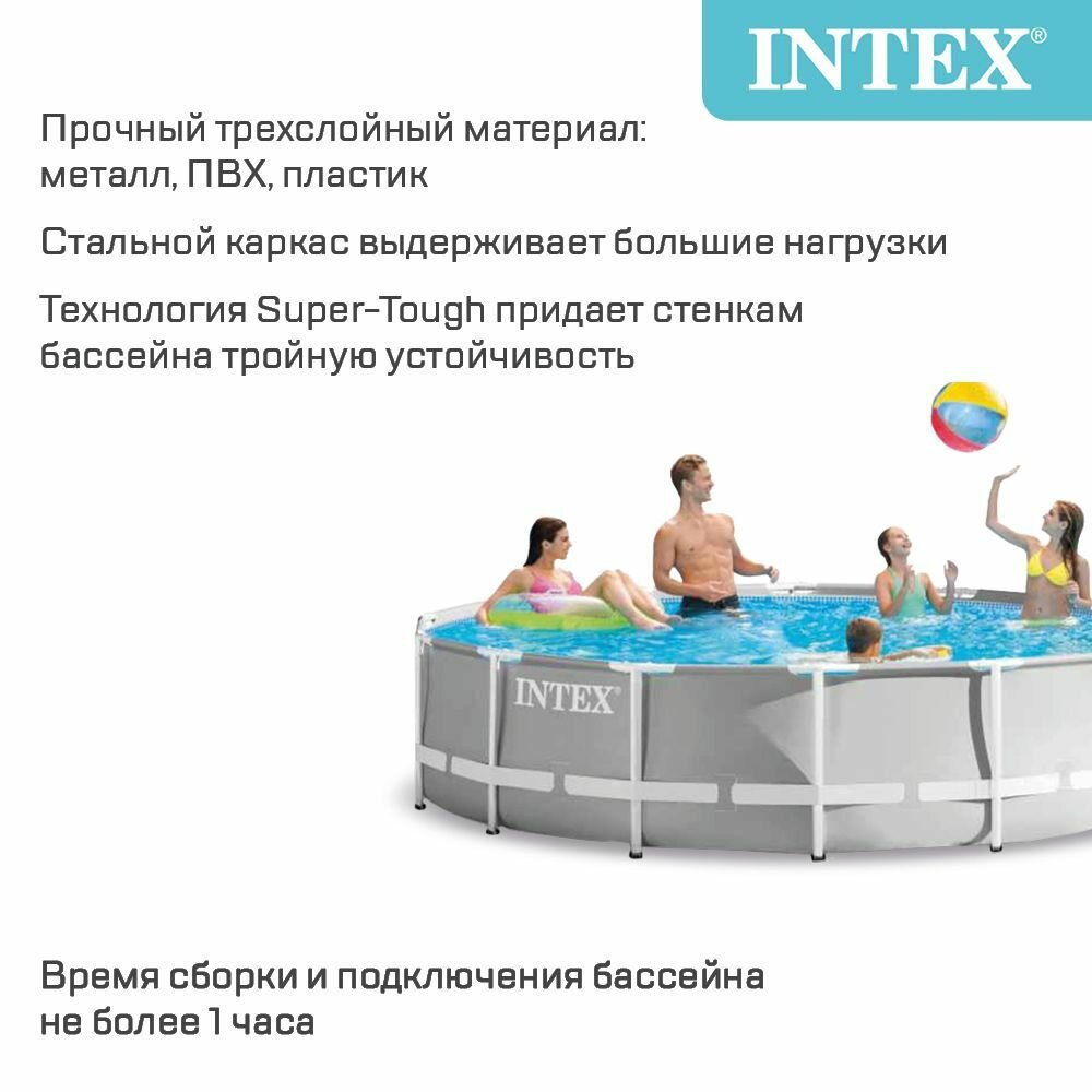 INTEX Каркасный бассейн 26720 Intex Prism Frame 427*107 см серый, фильтр-насос, аксессуары 26720