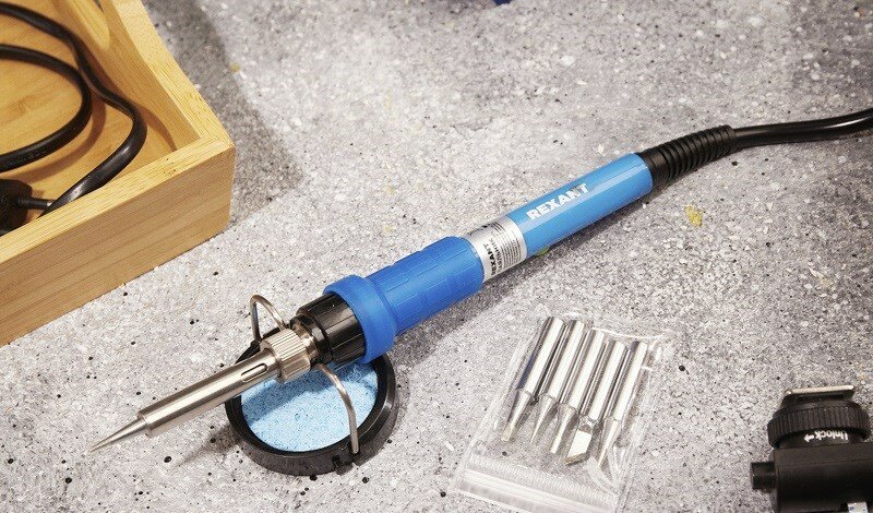 Паяльник REXANT с регулировкой температуры, подставка, 5 жал, керамический 65 вт, 220-480c 12-0614